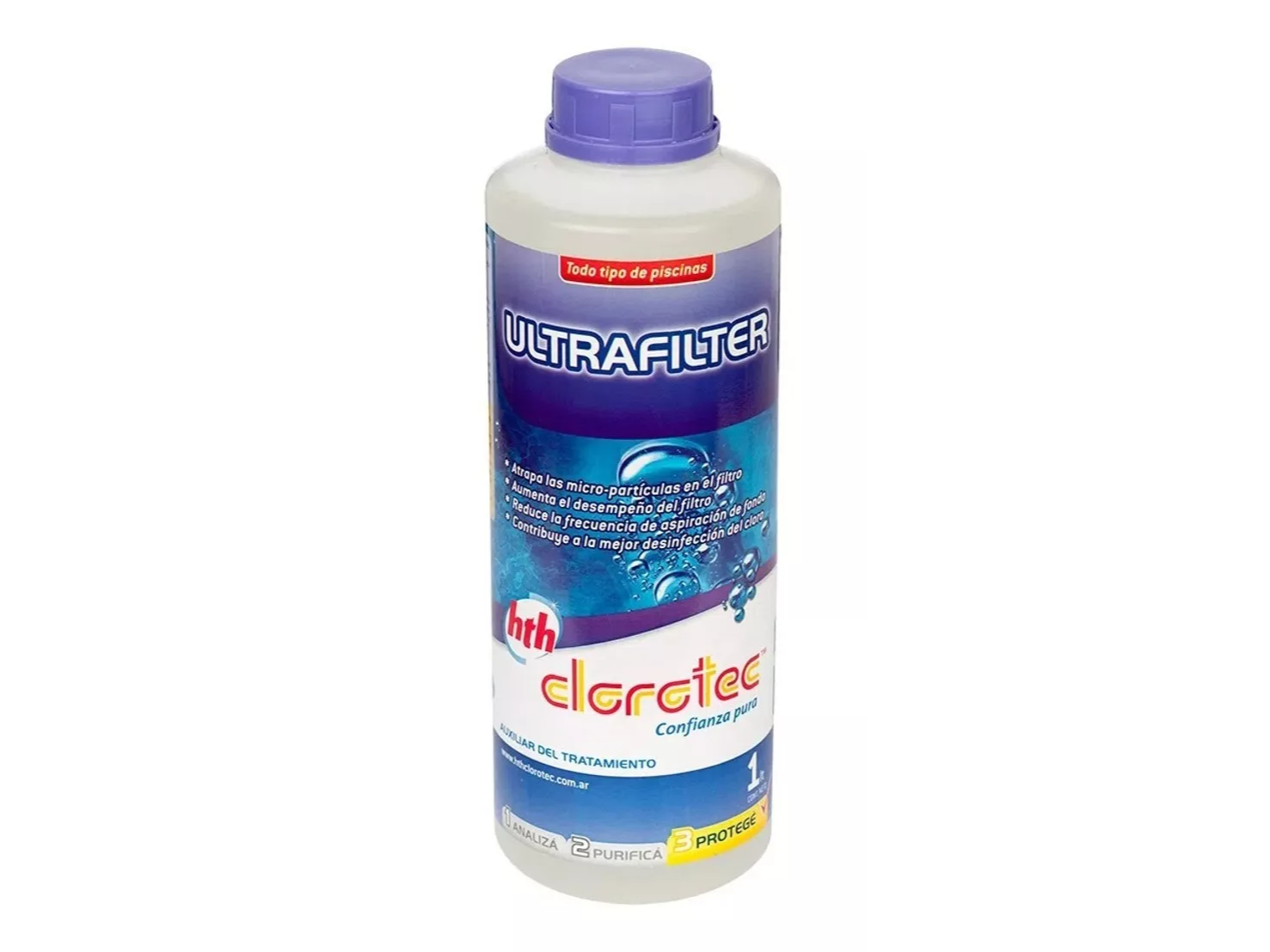 Con el agua equilibrada y con la dosis de cloro necesario, ahora protejámosla. Agregar 20 cc/ml cada 10 m3 (10.000lt) diluyéndolo en un balde con la misma agua de la piscina.