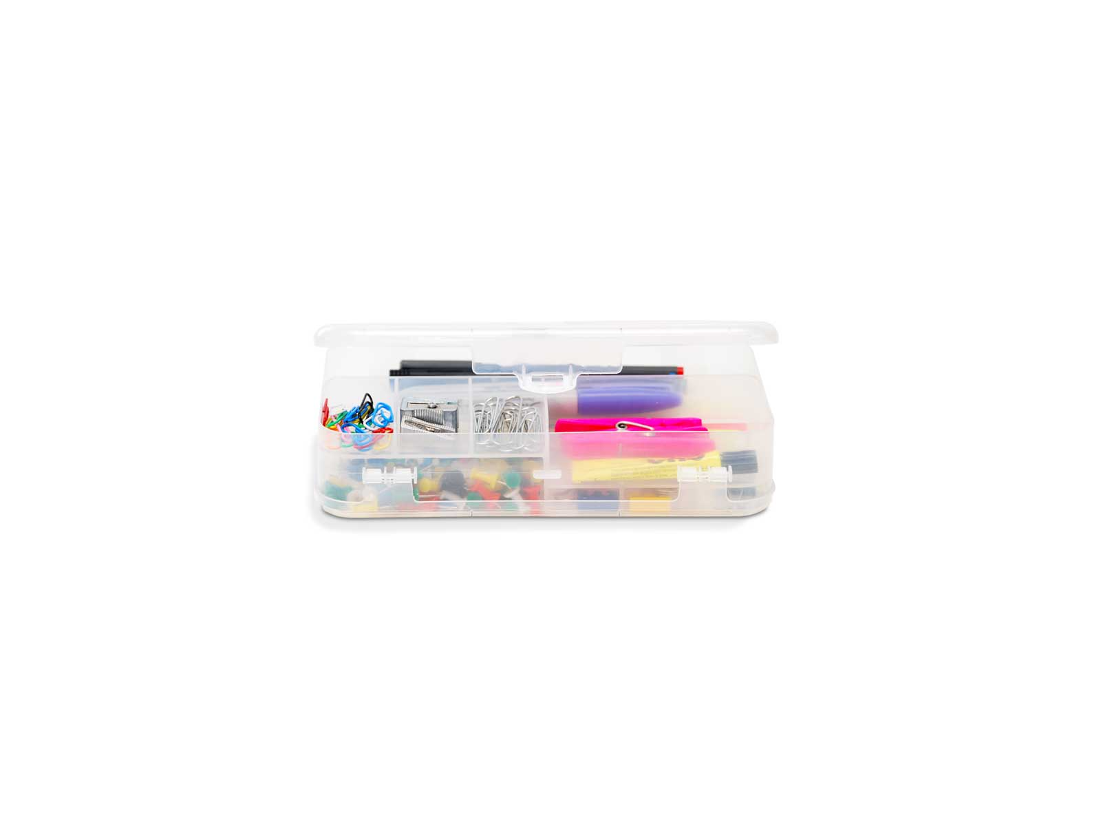 Mantené todo en su lugar con este práctico organizador de doble apertura. Gracias a sus múltiples divisiones internas, es ideal para guardar accesorios pequeños, artículos de oficina, manualidades, cosméticos o herramientas, manteniéndolos siempre a mano y bien clasificados.