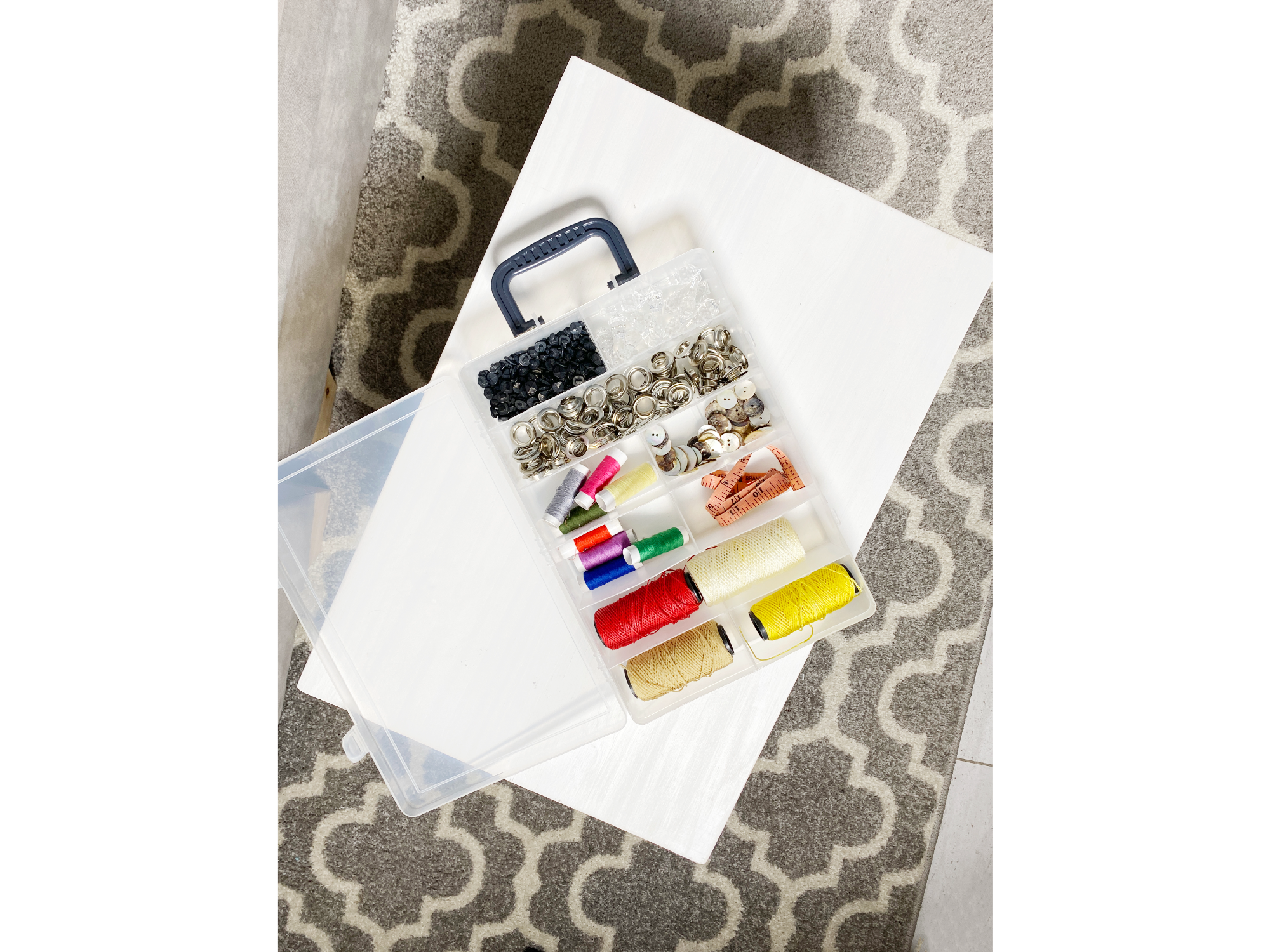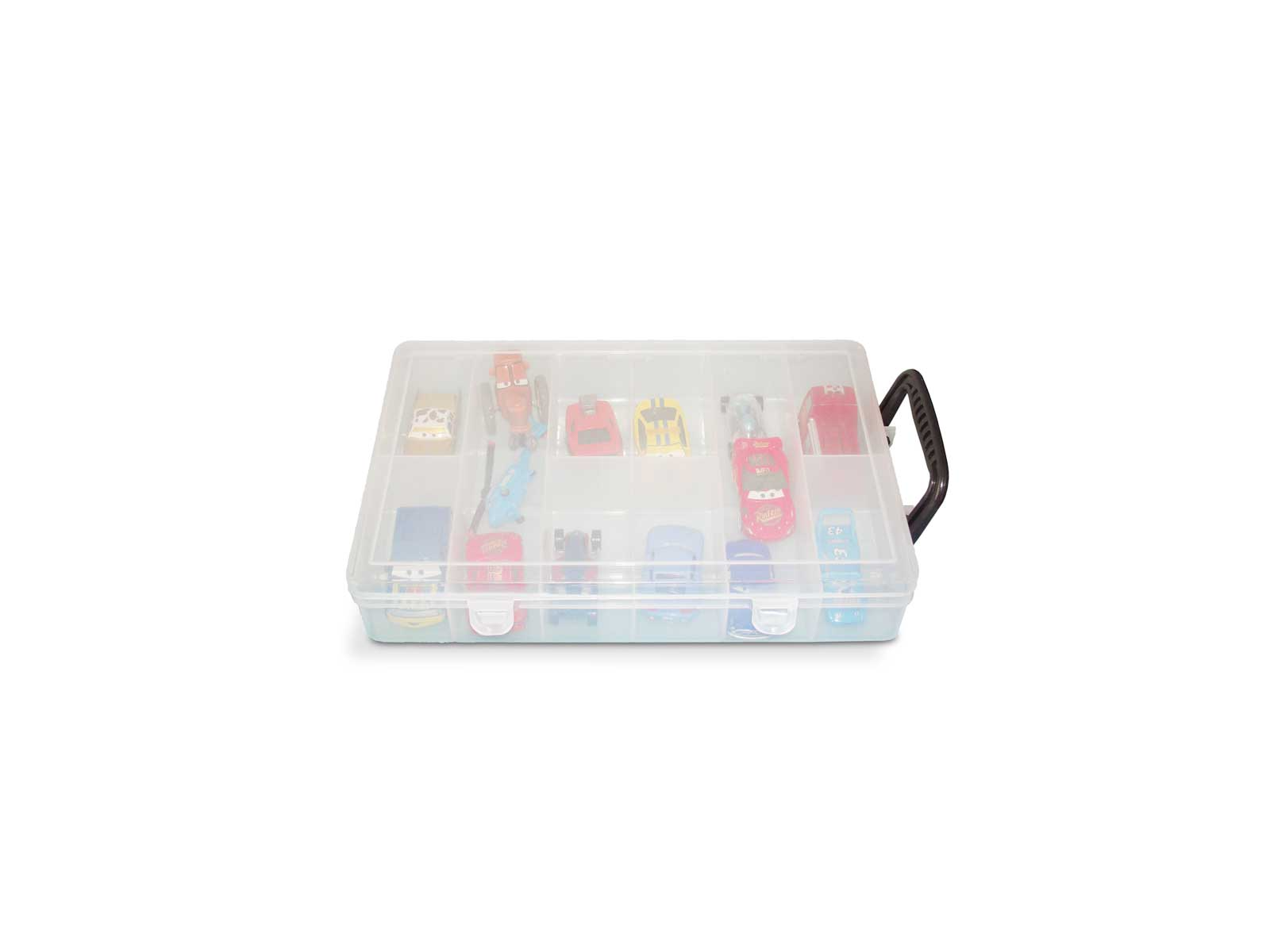 Organizá tus objetos de manera práctica y segura con este organizador rectangular con manija y trabas. Sus múltiples divisiones internas permiten clasificar tanto artículos pequeños como medianos, siendo ideal para bijouterie, herramientas, accesorios de oficina o manualidades.