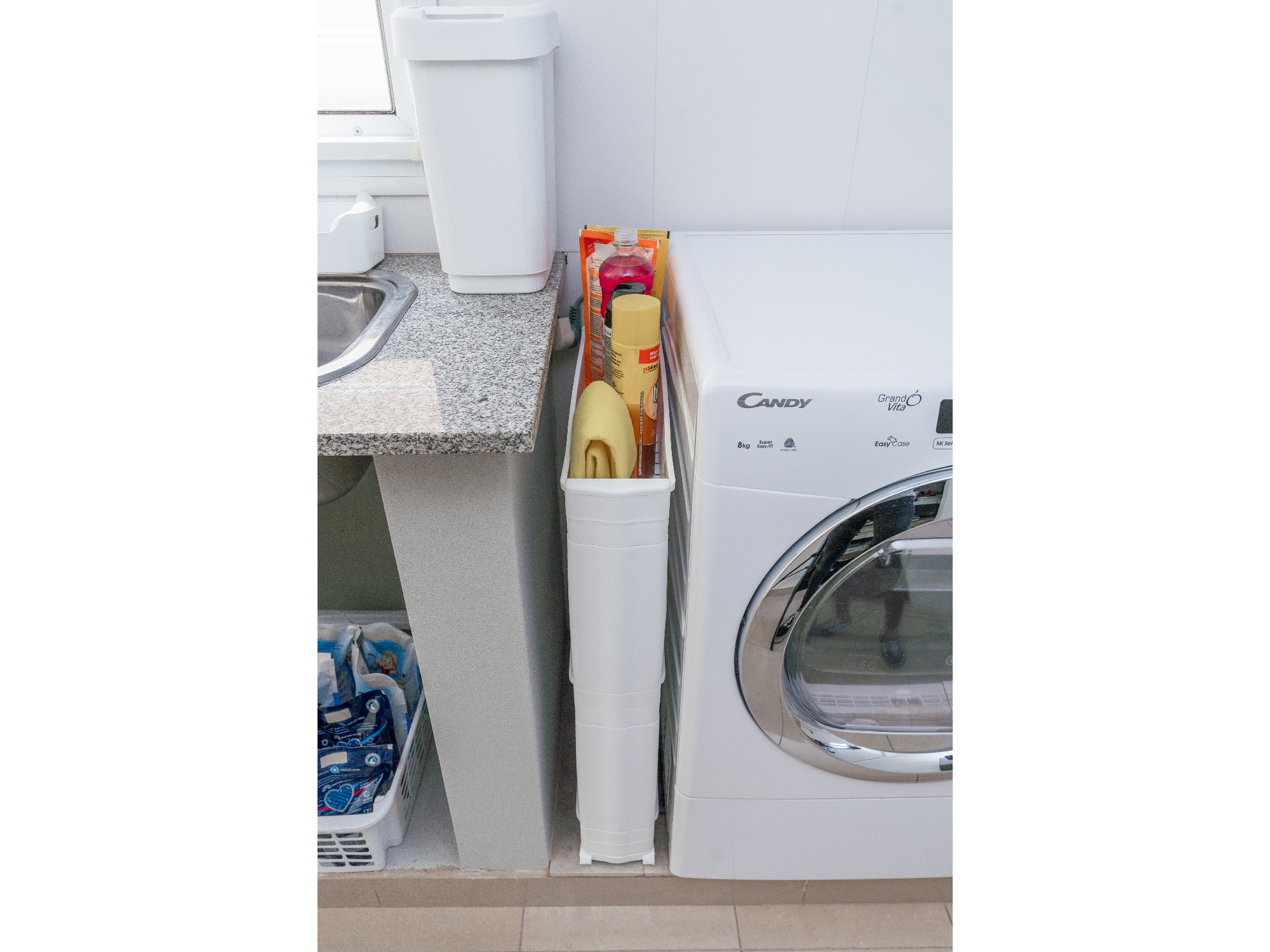 Organizá tus espacios de forma práctica y eficiente con este carrito slim de 3 niveles. Su diseño angosto lo hace perfecto para aprovechar rincones en la cocina, baño o lavadero. Disponible en colores blanco y negro.