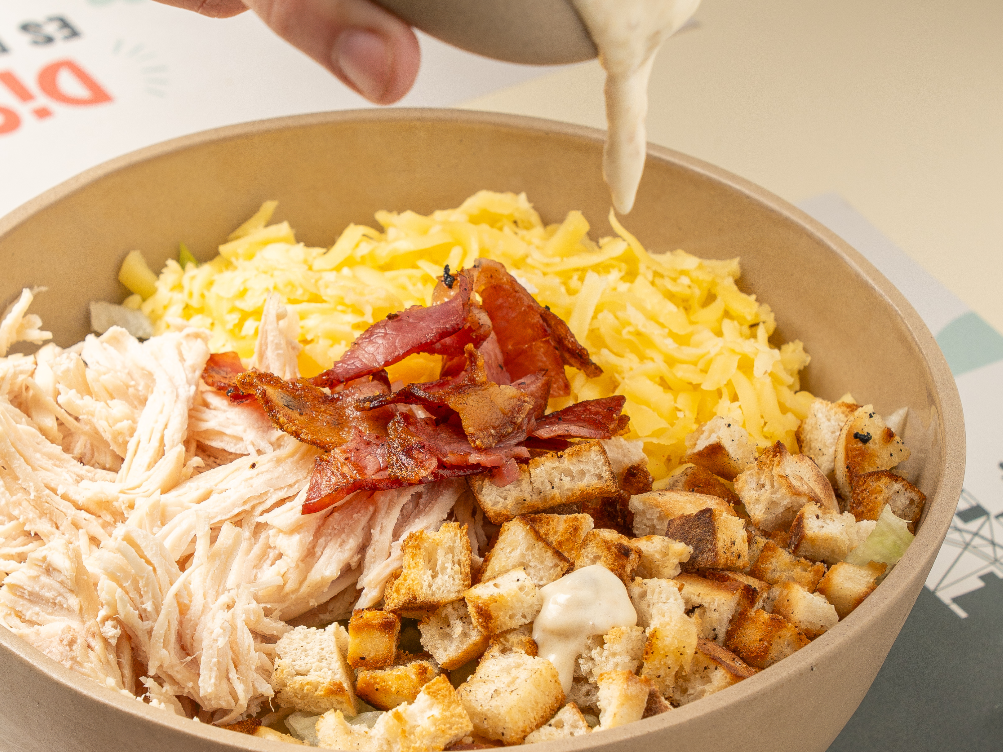 Ensalada Caesar Compartir por WhatsApp Copiar enlace Lechuga repollada fresca, crutòn, panceta crujiente, queso en hebras, pechuga de pollo, aderezo caesar Para mantener la calidad y el sabor que cada ingrediente: nuestra ensalada se prepara en el momento! :)$14.160 Personalizá tu selección Las siguientes opciones aplican para cada producto agregado. Porción pollo extra Seleccioná las opciones que quieras.Porción de pollo extra$1.950 Aderezo Caesar extra Seleccioná las opciones que quieras.Extra porción aderezo Caesar$1.150 Porción Pollo crispy (remplazo pechuga de pollo) Seleccioná las opciones que quieras.Adicional pollo crispy$5.330 Observaciones 0 / 150
