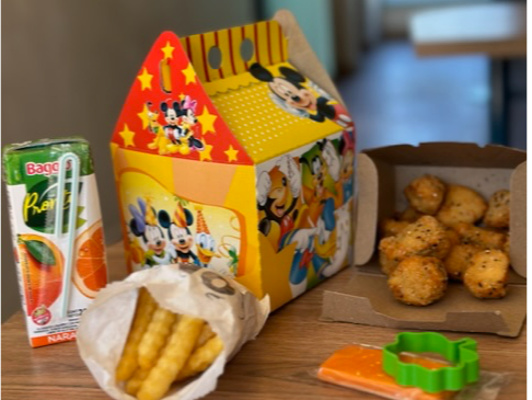 Cajita Combi con Nuggets Compartir por WhatsApp Copiar enlace Cajita feliz con Nuggets de pollo (100% pechuga )+ papas fritas krincles + jugo + sorpresa Presentaciones Seleccioná una opción.Nuggets 100% Pechuga de Pollo$12.320Nuggets Estilo Americano$12.320 Personalizá tu selección Las siguientes opciones aplican para cada producto agregado. Agrégale cheddar a tus papas Seleccioná las opciones que quieras.Adicional cheddar en papas$1.370 Observaciones 0 / 150