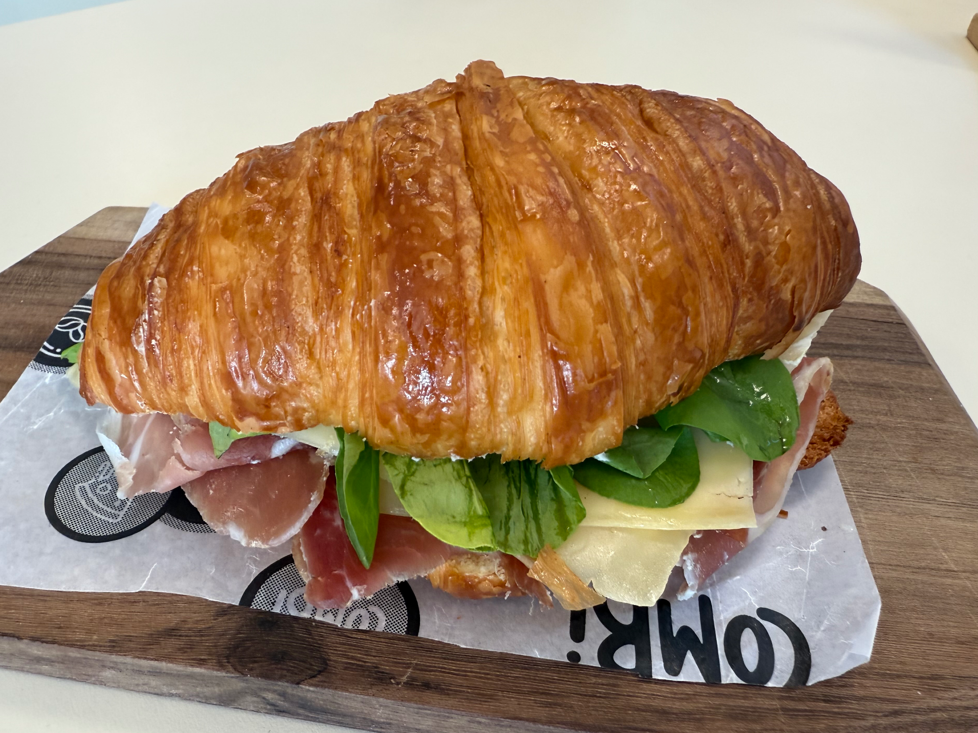 Croissant de jamón crudo y rúcula Compartir por WhatsApp Copiar enlace Croissant relleno de jamón crudo, queso dambo, rúcula y tomates secos, untado con queso crema para darle el toque justo!$11.230 Observaciones 0 / 150