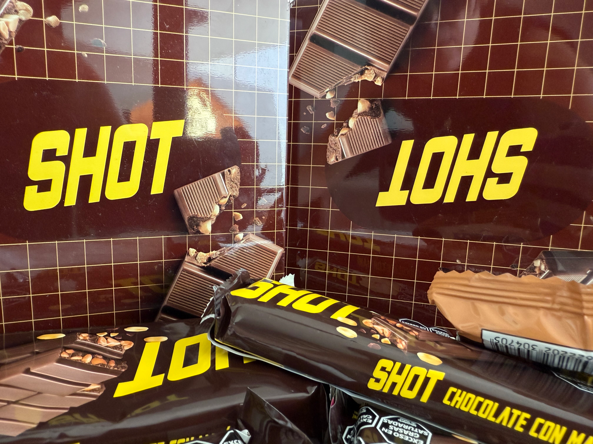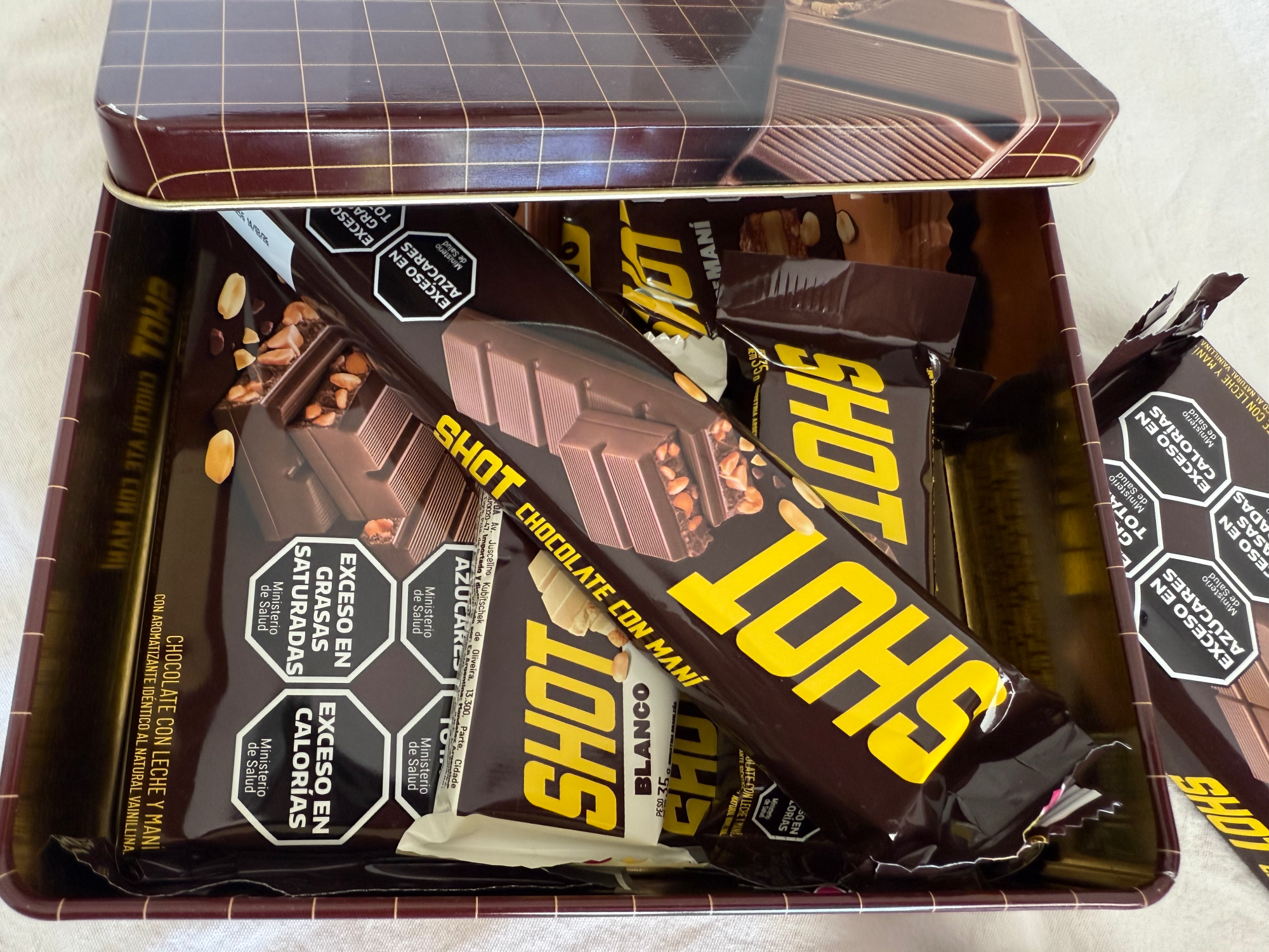 2 tabletas shot chocolate con leche y maní 35 gr por unidad