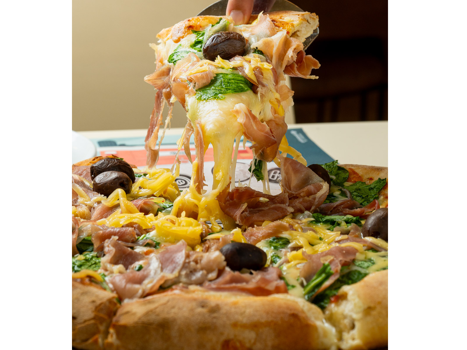 Masa madre, salsa de tomate, mozzarella, rúcula, jamón crudo, olivas negras . De regalo, nuestra mayo casera de berenjenas ahumadas para untar los bordes 🧡