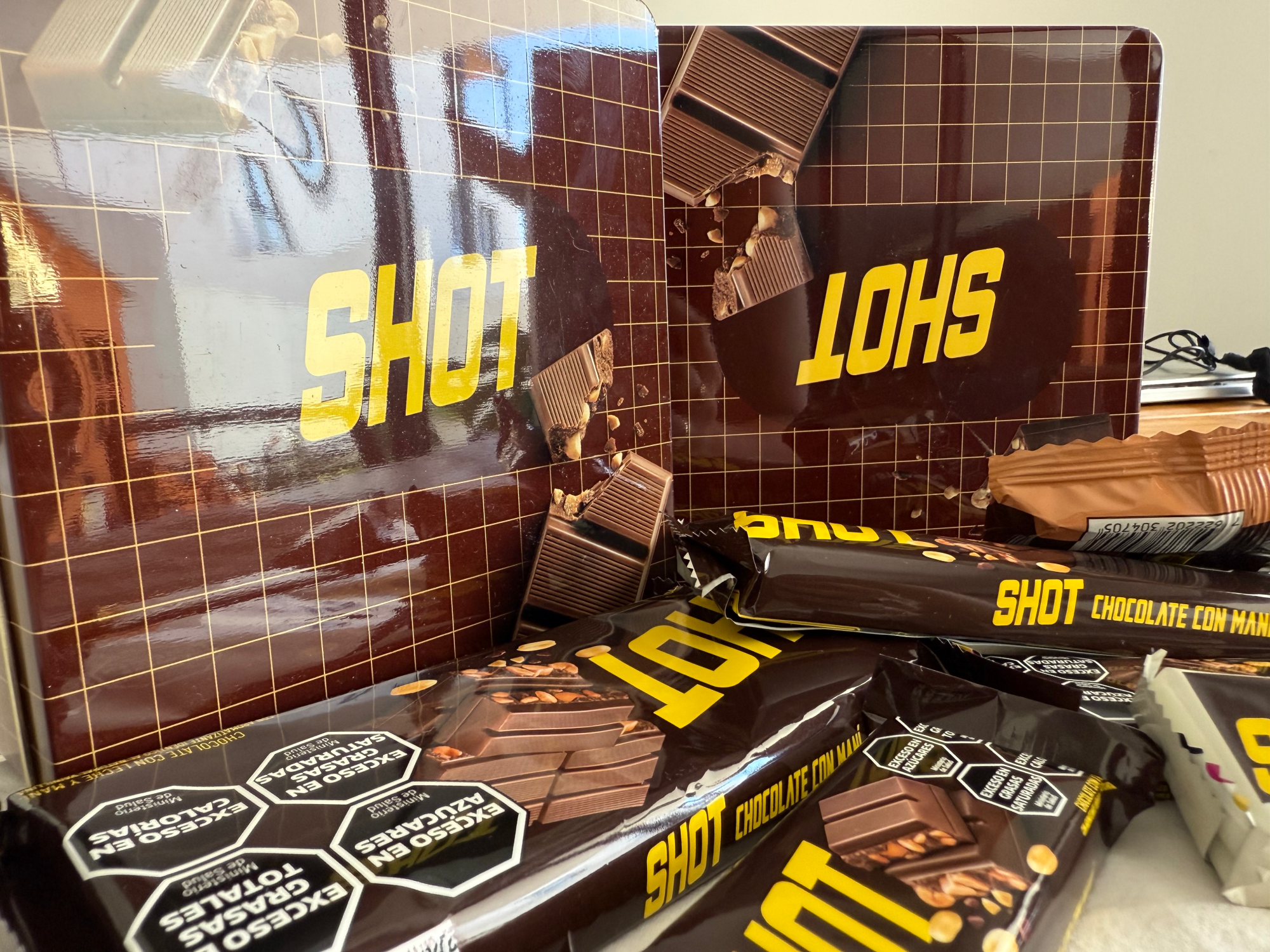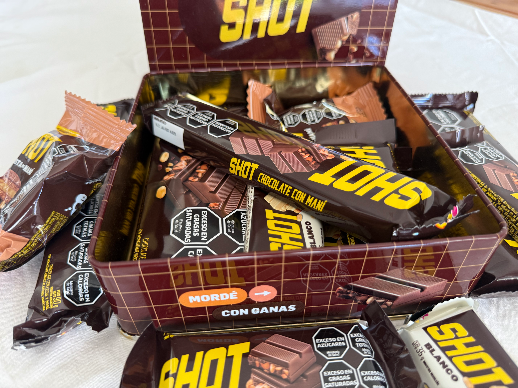 2 tabletas shot chocolate con leche y maní 35 gr por unidad