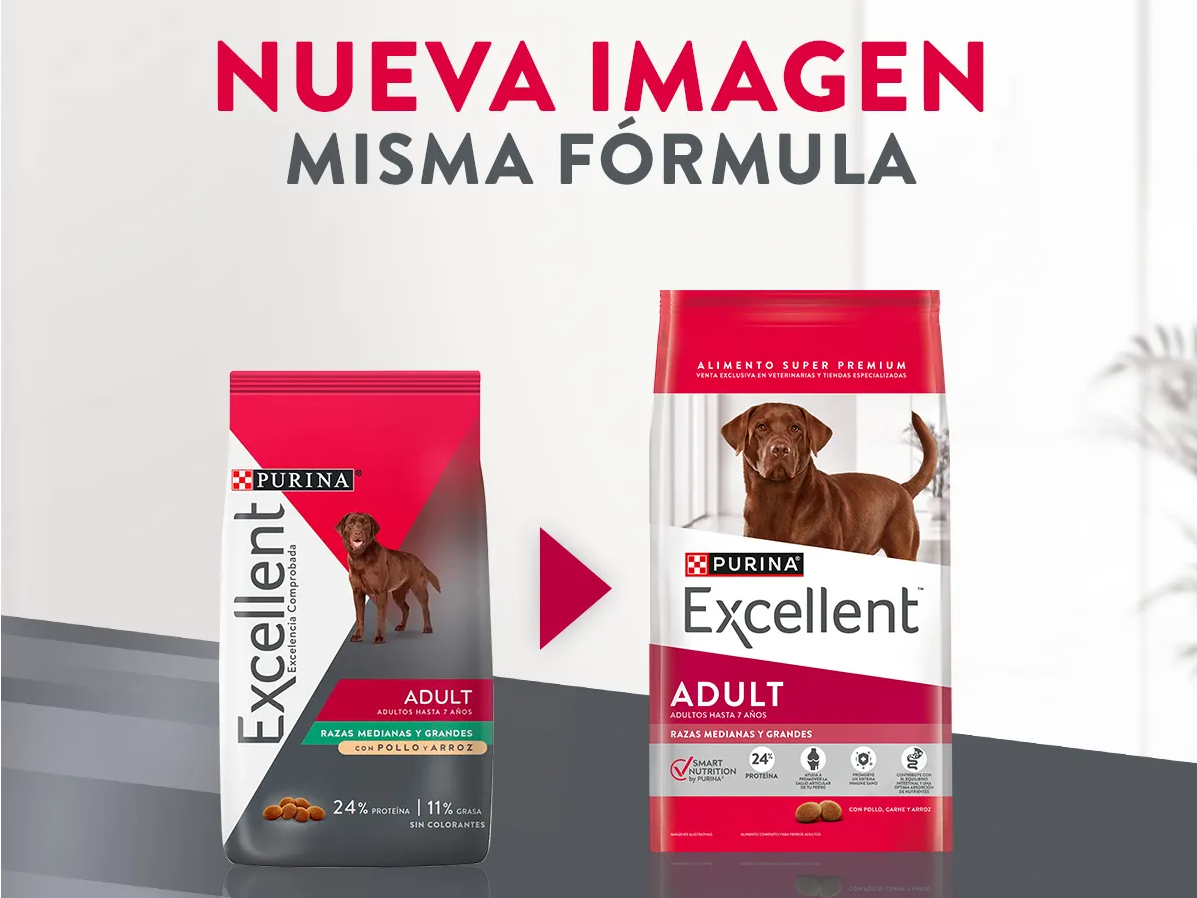 Con la compra de un Excellent Adultos Medianos y Grandes 20kg, abonando en efectivo o transferencia tenes un 24% de dto.