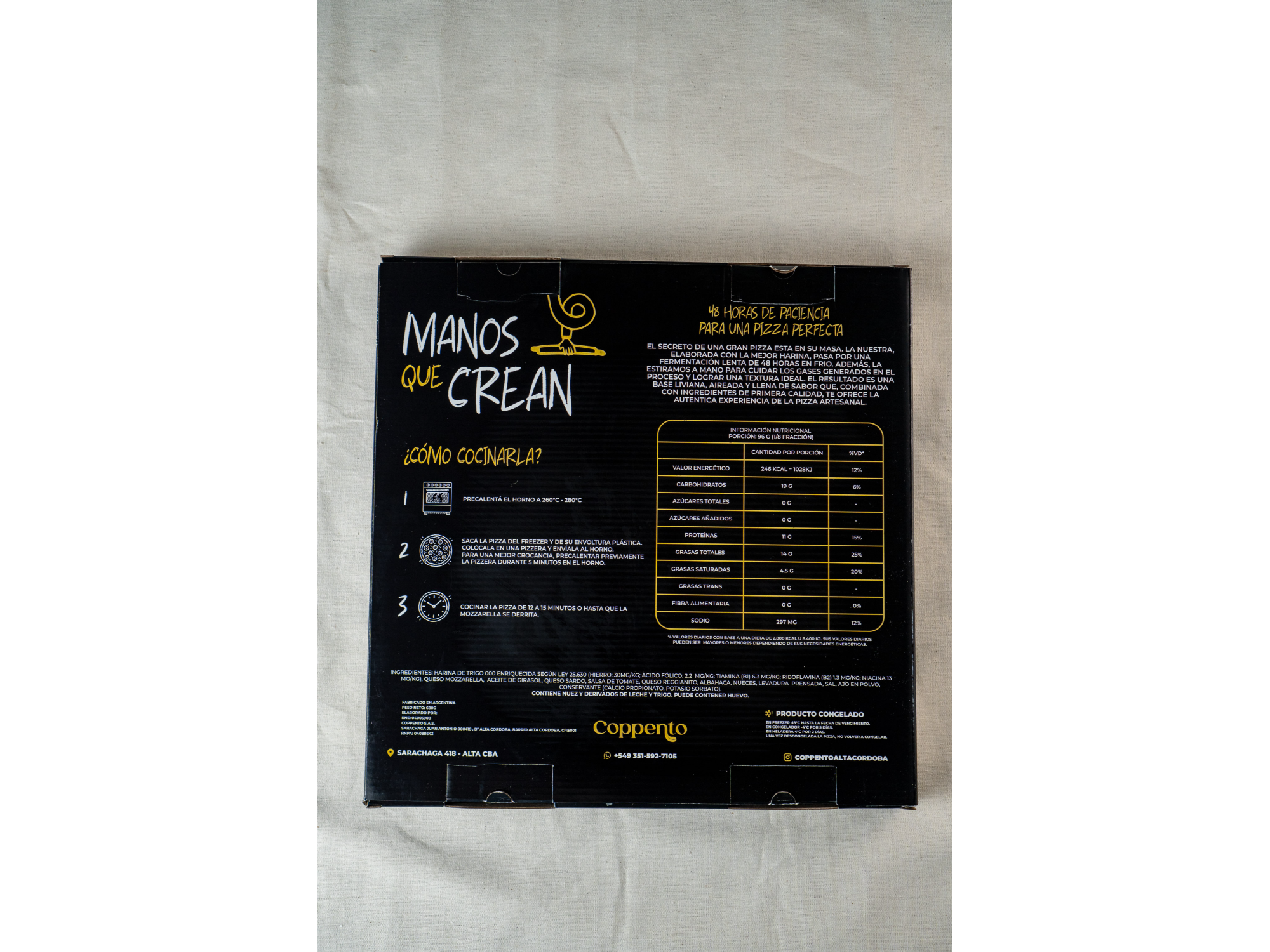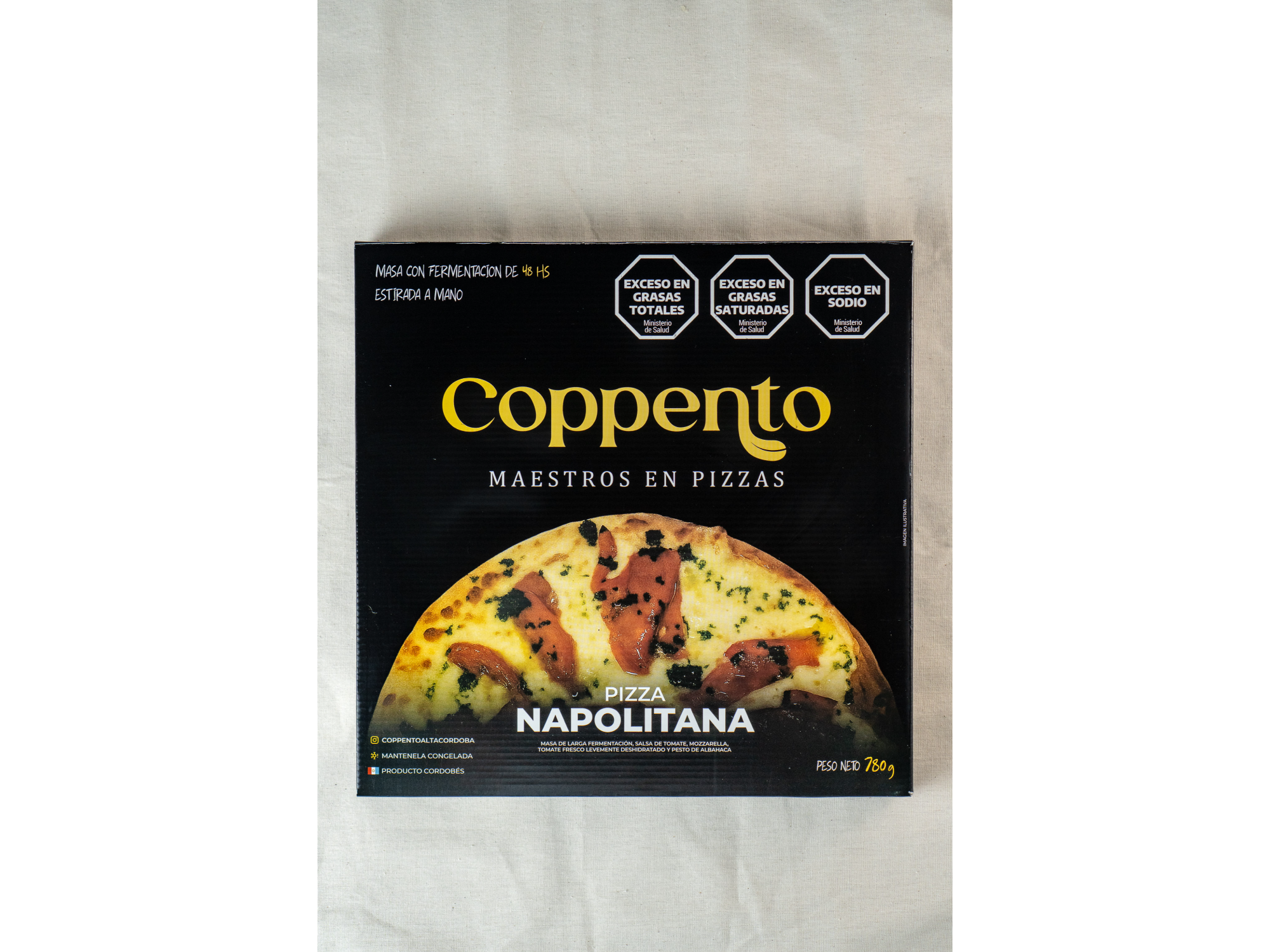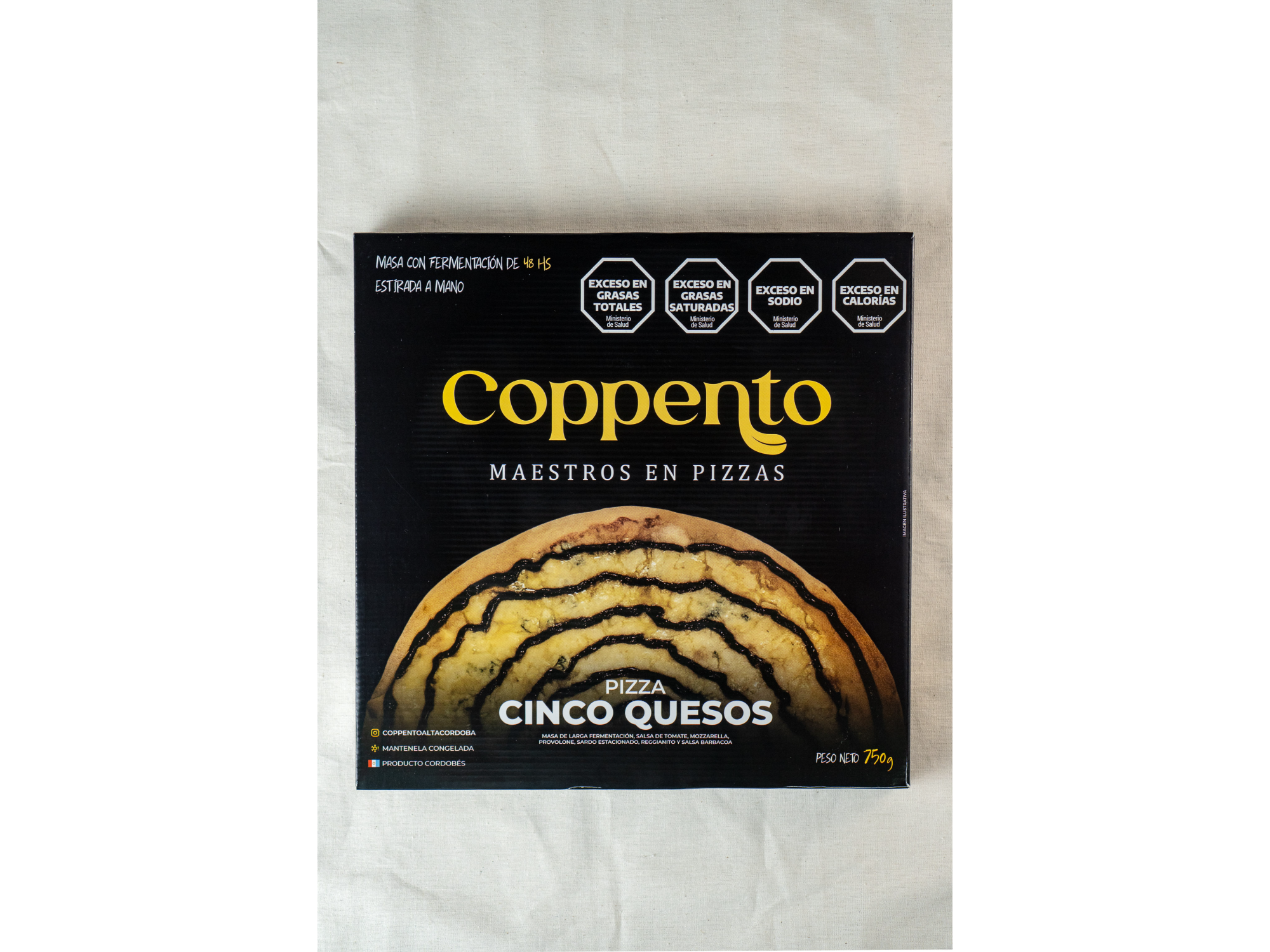 Pizzas congeladas para compartir Compartir por WhatsApp Copiar enlace Pizza de 48 hs de fermentación, hechas con un blend de harina orgánica y de fuerza Campodónico. Salsa de tomate orgánico y mozzarella Orcoví. Presentaciones Seleccioná las opciones que quieras.Napolitana Ingredientes: Salsa de tomate, queso mozzarella, tomates y pesto de albahaca. $9.500Peperoni Ingredientes: Salsa de tomate, queso mozzarella y peperoni. $9.900Margarita Ingredientes: Salsa de tomate, queso mozzarella, blend de quesos duros (reggianito y sardo estacionado) y espiral de pesto de albahaca. $8.700Cinco Quesos Ingredientes: Queso mozzarella, queso provolone, queso azul, queso reggianito, queso sardo estacionado y salsa Frida. $9.500Jamón y morrón Ingredientes: Queso mozzarrella, jamón cocido y morrón. $9.500 Observaciones 0 / 150