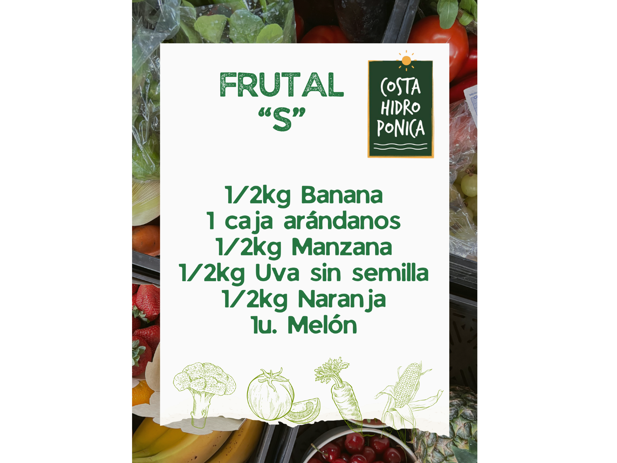 COMBOS Compartir por WhatsApp Copiar enlace Frutas Verduras Frutas (3) FRUTAL "S" $20.000 FRUTAL "M" $27.000 FRUTAL "L" $34.000 Verduras (3) VERDURA "S" $15.000 VERDURA "M" $25.000 VERDURA "L" $36.000