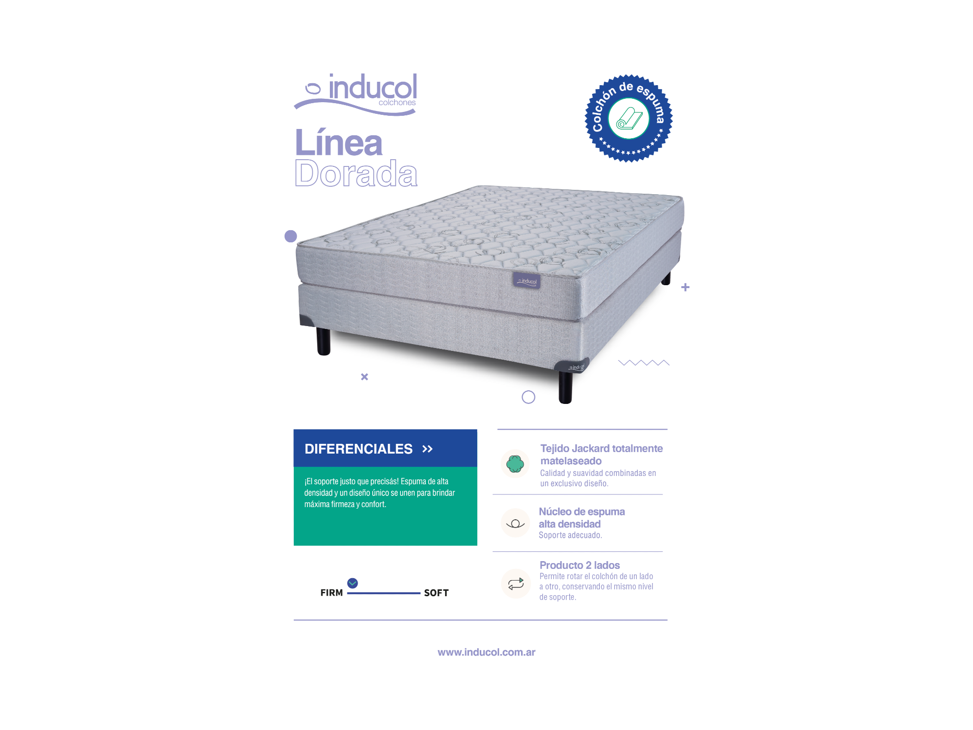 Recomendado para personas de 90 kg a 100 kg o menos tambien. Fabricado en Argentina con el respaldo de Inducol, el Línea Dorada es una excelente elección para quienes buscan un colchón resistente, firme y diseñado para cuidar la postura noche tras noche.