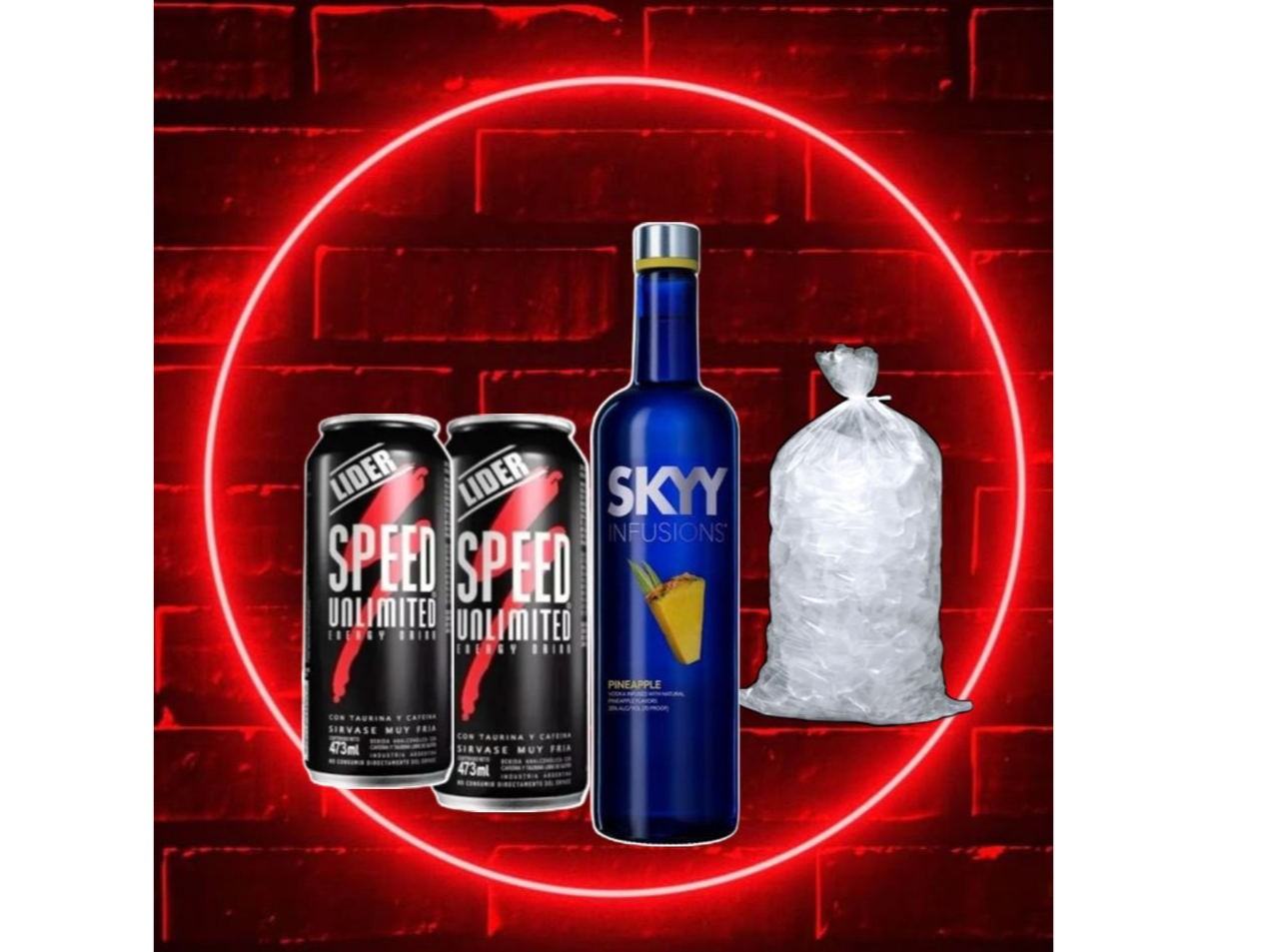 Vodka sky saborizado a elección + 2 mango loco+hielo