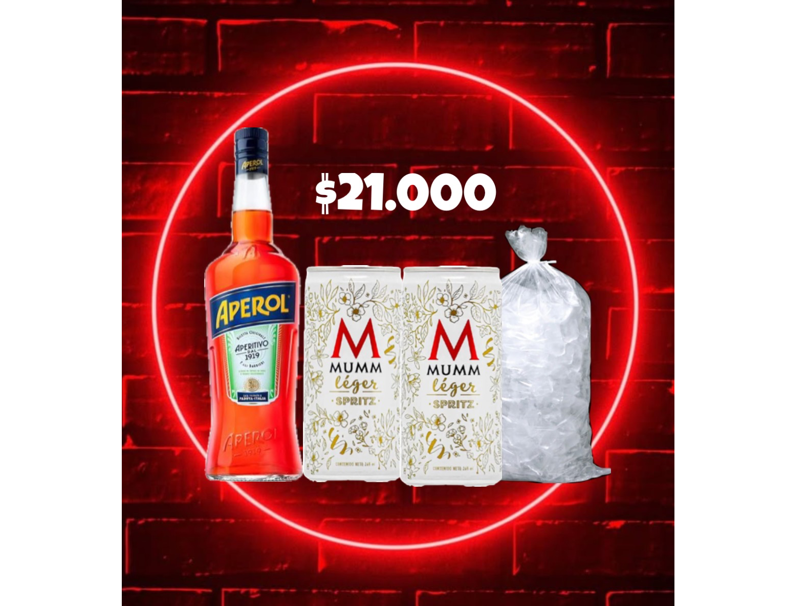 Aperol+ 2 champagne lata+ hielo