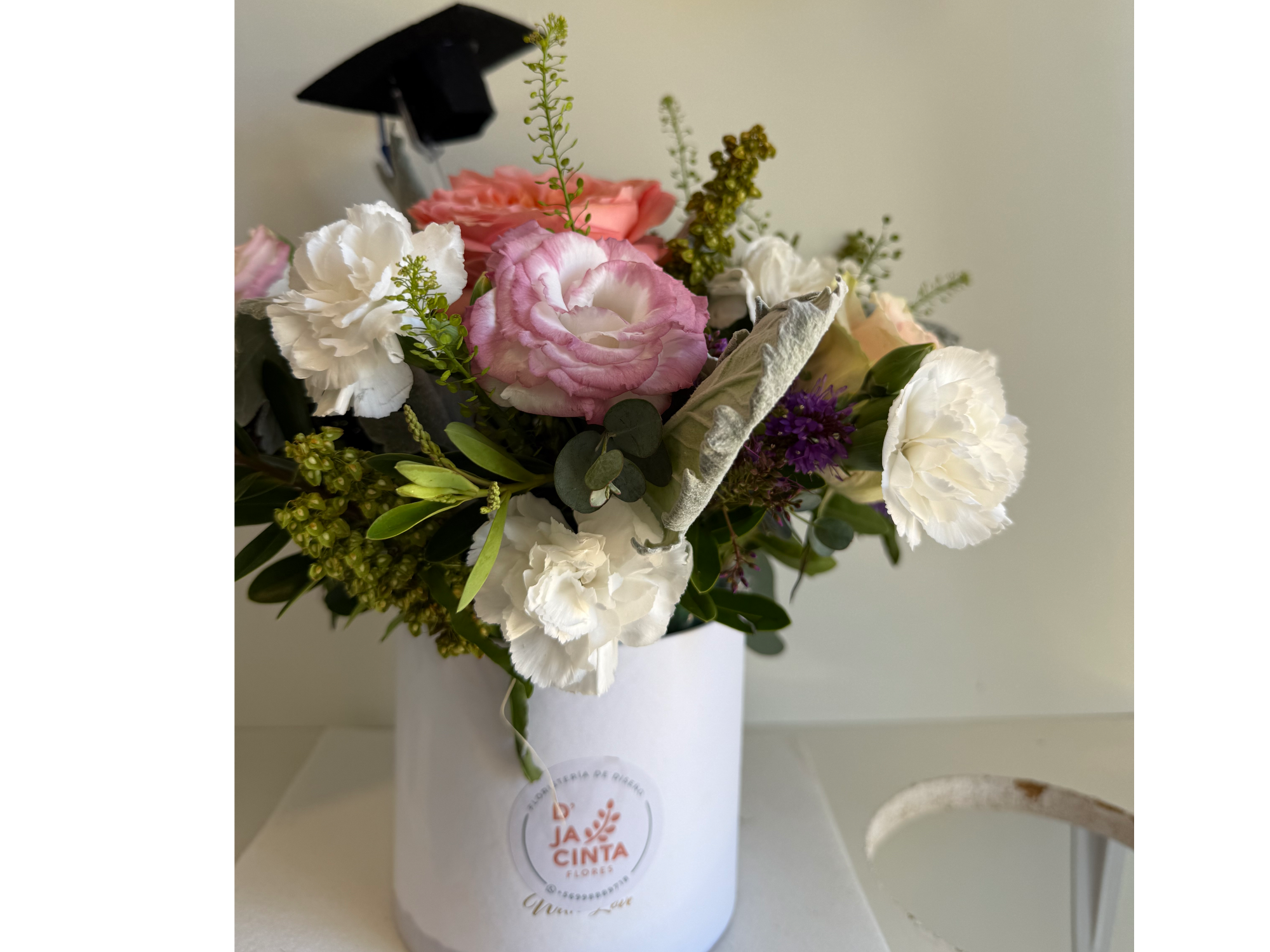 Mini caja floral con peluche o birrete