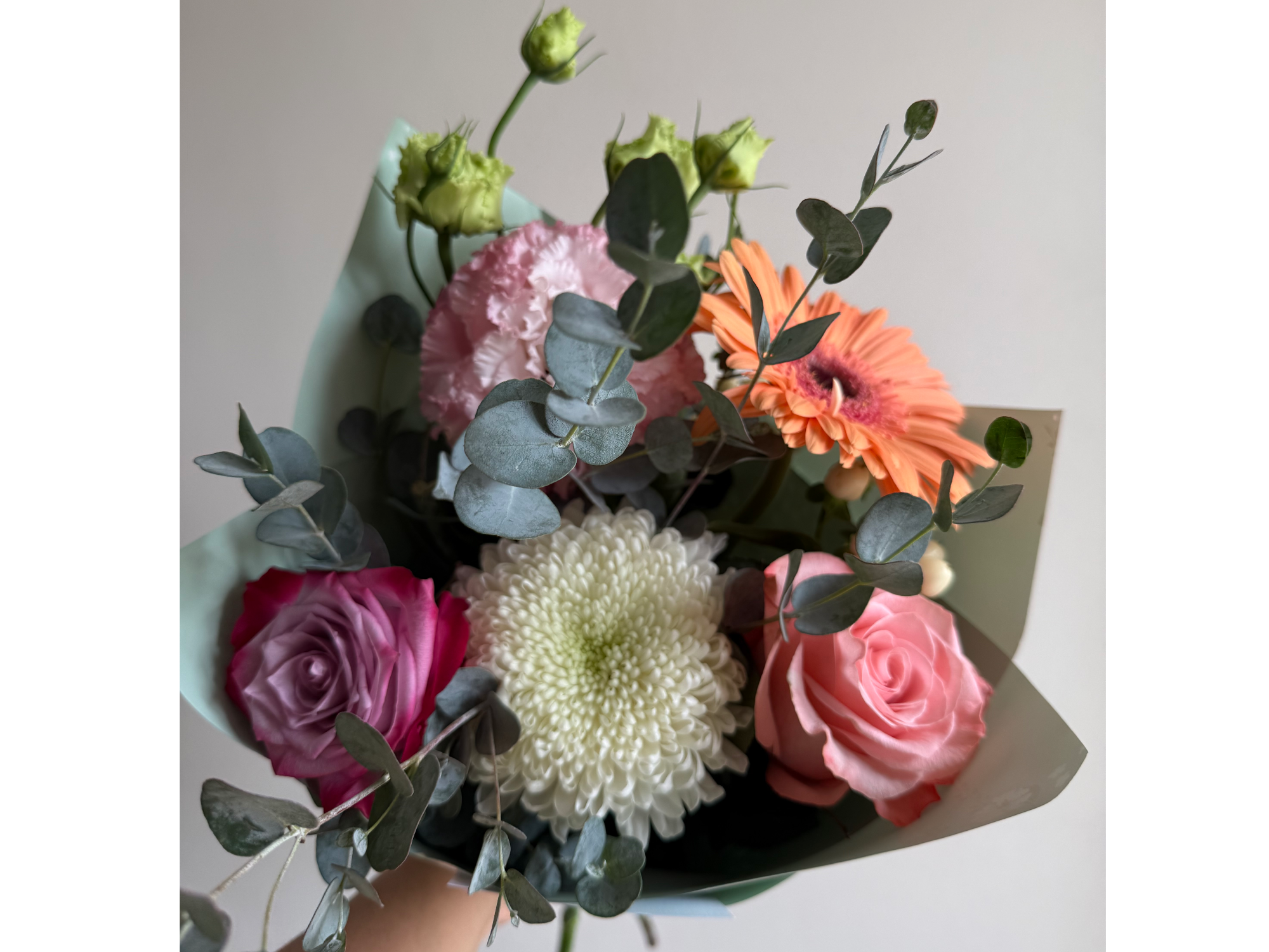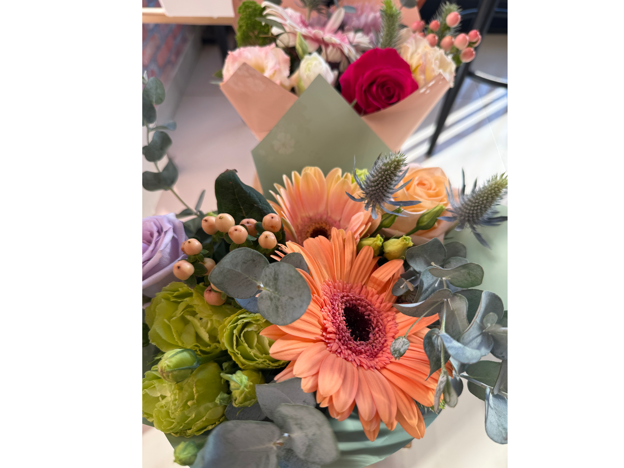 Mix Estacional Compartir por WhatsApp Copiar enlace Disfruta de las flores más bellas de temporada Un hermoso mix de rosas, Gerberas, follaje y flores estacionales. Flores base 2 rosas- 1 gerbera O pueden ser 2 gerberas 1 rosa el resto se complementa con eucalipto, y flores de cada temporada$16.000 Observaciones 0 / 150