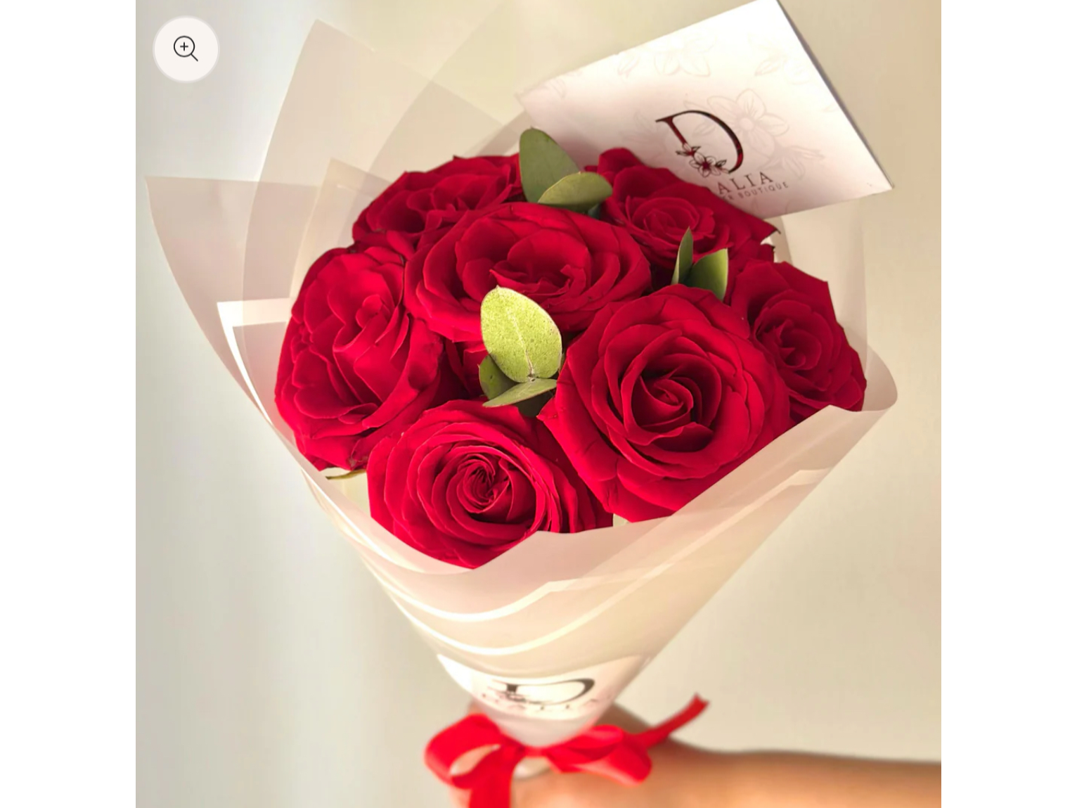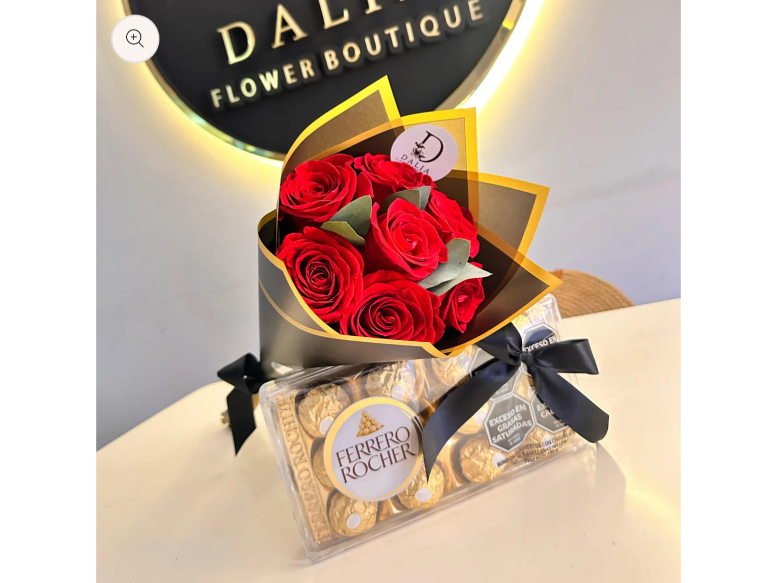 Buqué Encanto Un arreglo elegante y sofisticado compuesto por 7 rosas rojas importadas de Ecuador, seleccionadas cuidadosamente por su apertura perfecta, intensidad de color y frescura superior. Cada tallo refleja distinción y romanticismo, ideal para transmitir amor, admiración o celebración con estilo. Para hacerlo aún más especial, puede adicionar bombones Ferrero Rocher en cualquiera de sus presentaciones, creando un detalle completo y memorable