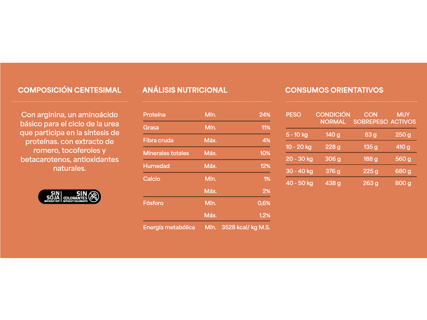 CRIADORES ADULTOS HIPOALERGÉNICO está desarrollado sin soja, sin colorantes y con 24% de proteínas de las cuales un 80% es de origen animal: cordero y/cerdo. Con componentes que estimulan y refuerzan su sistema inmunológico, protegen los sistemas nervioso y cardiovascular, mejoran las articulaciones y cuidan la barrera intestinal