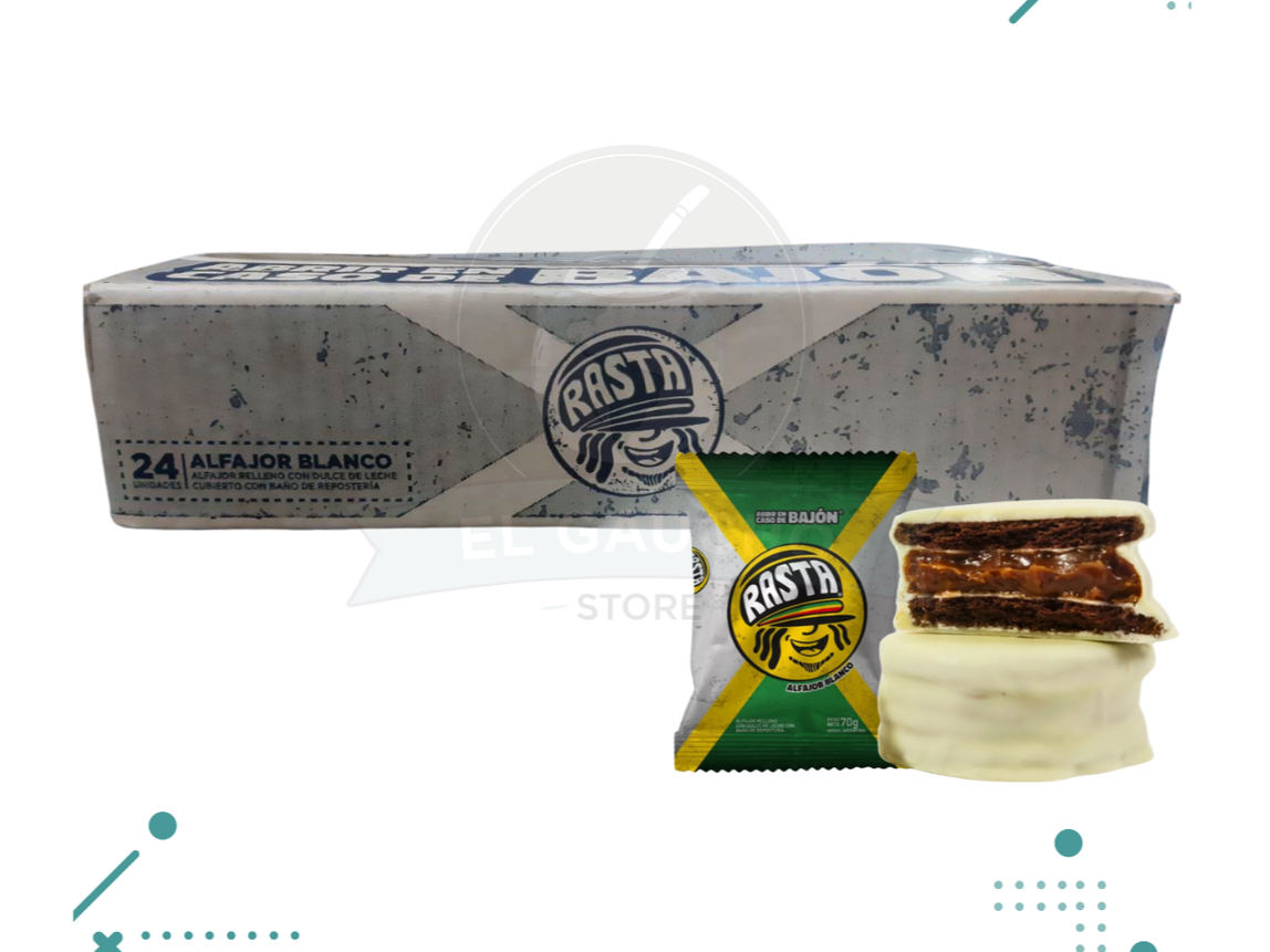 RASTA BLANCO 70 GR Presentaciones Seleccioná las opciones que quieras.COMPRANDO MINIMO DE 10 CAJAS DE 18 UDS O MAS$747,88COMPRANDO POR CAJA DE 18 ALFAJORES$769,05 Observaciones 0 / 150 Encontrá productos relacionados LO TENES QUE TENER (73)