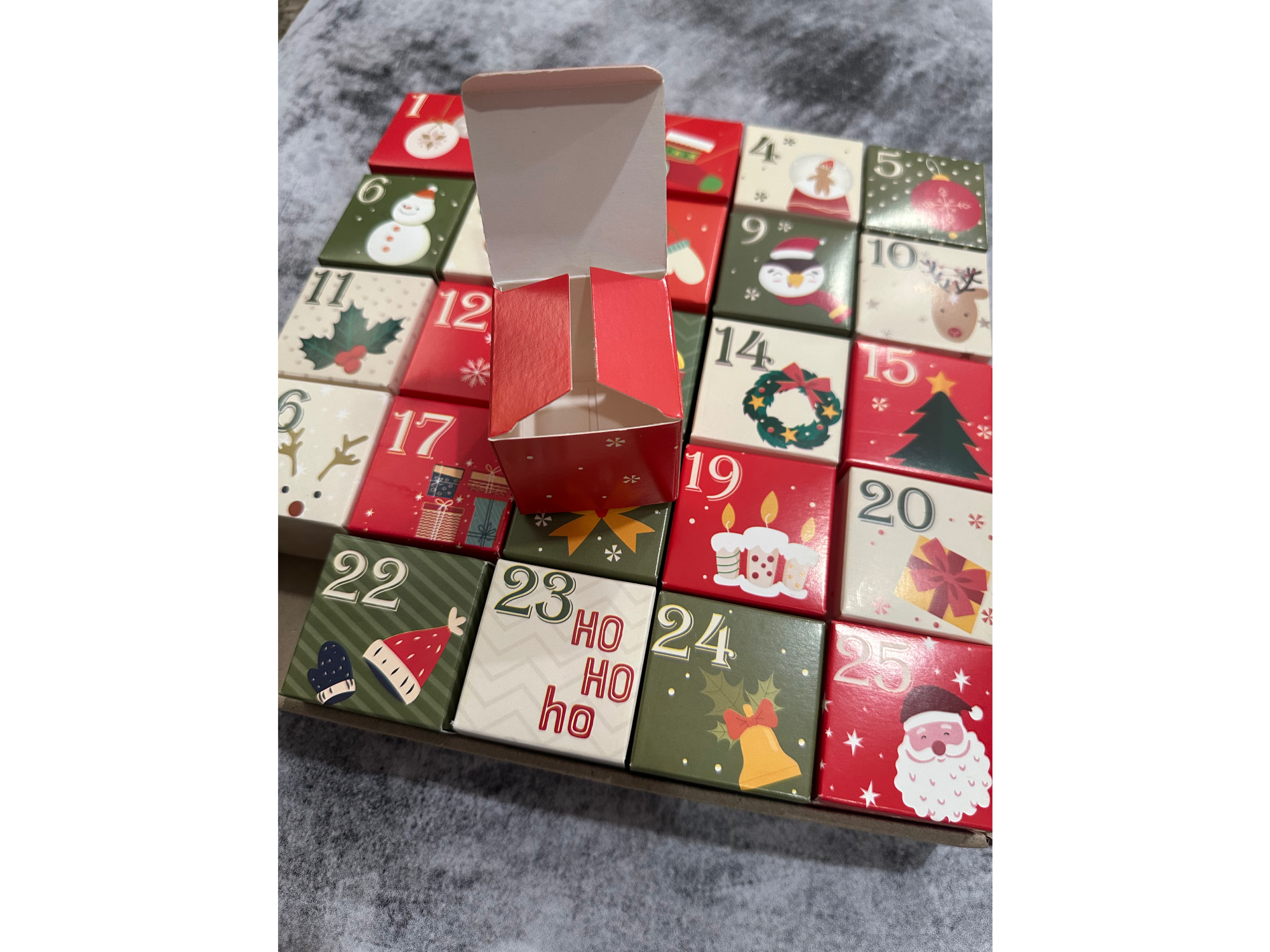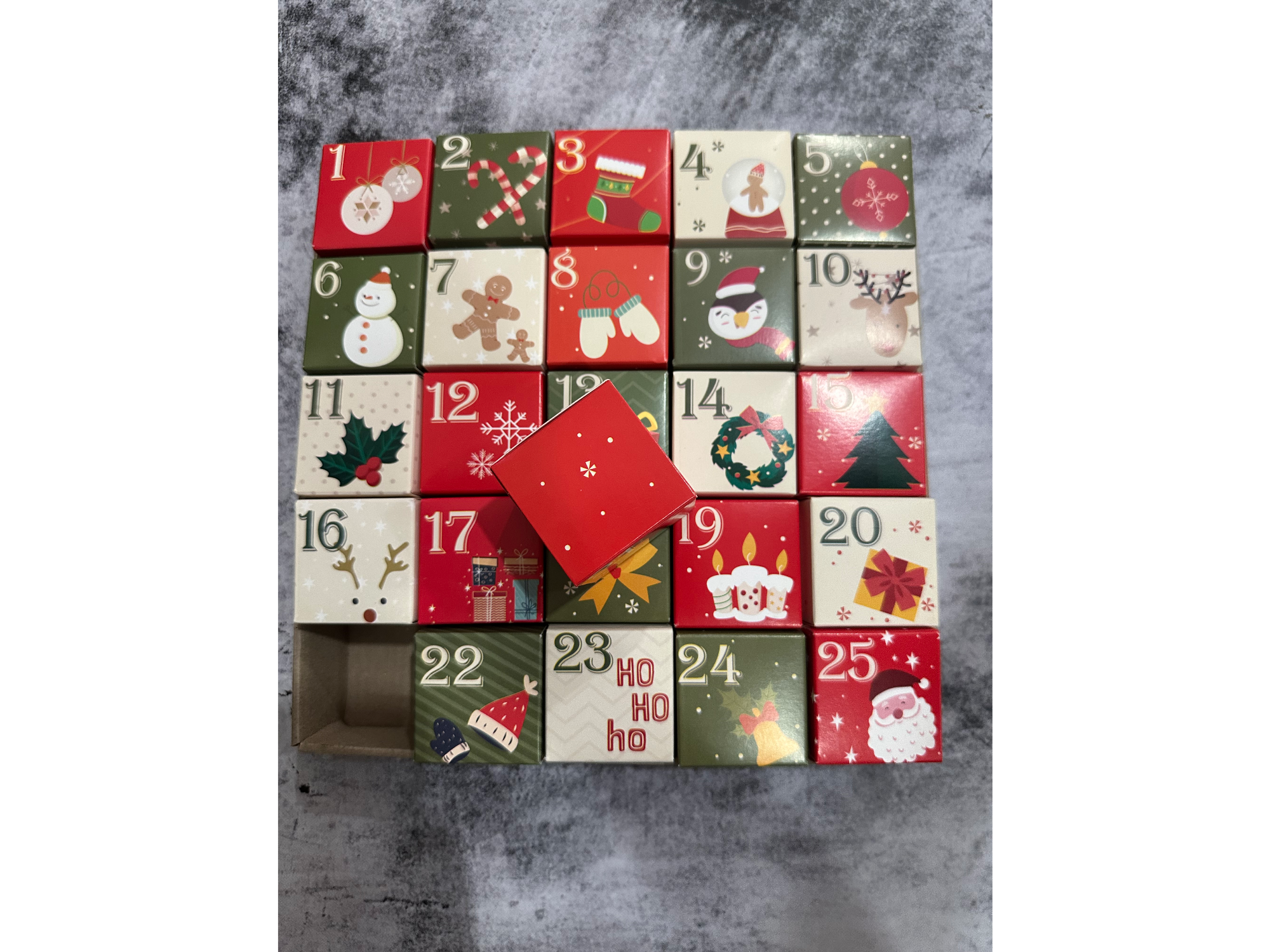 Adviento navidad Compartir Esta caja es por encargo. Señas el 50% y cuando llega (en la misma semana) abonas el resto. Entero mide 25x25 y cada cubo 4.5$18.500 Observaciones 0 / 150