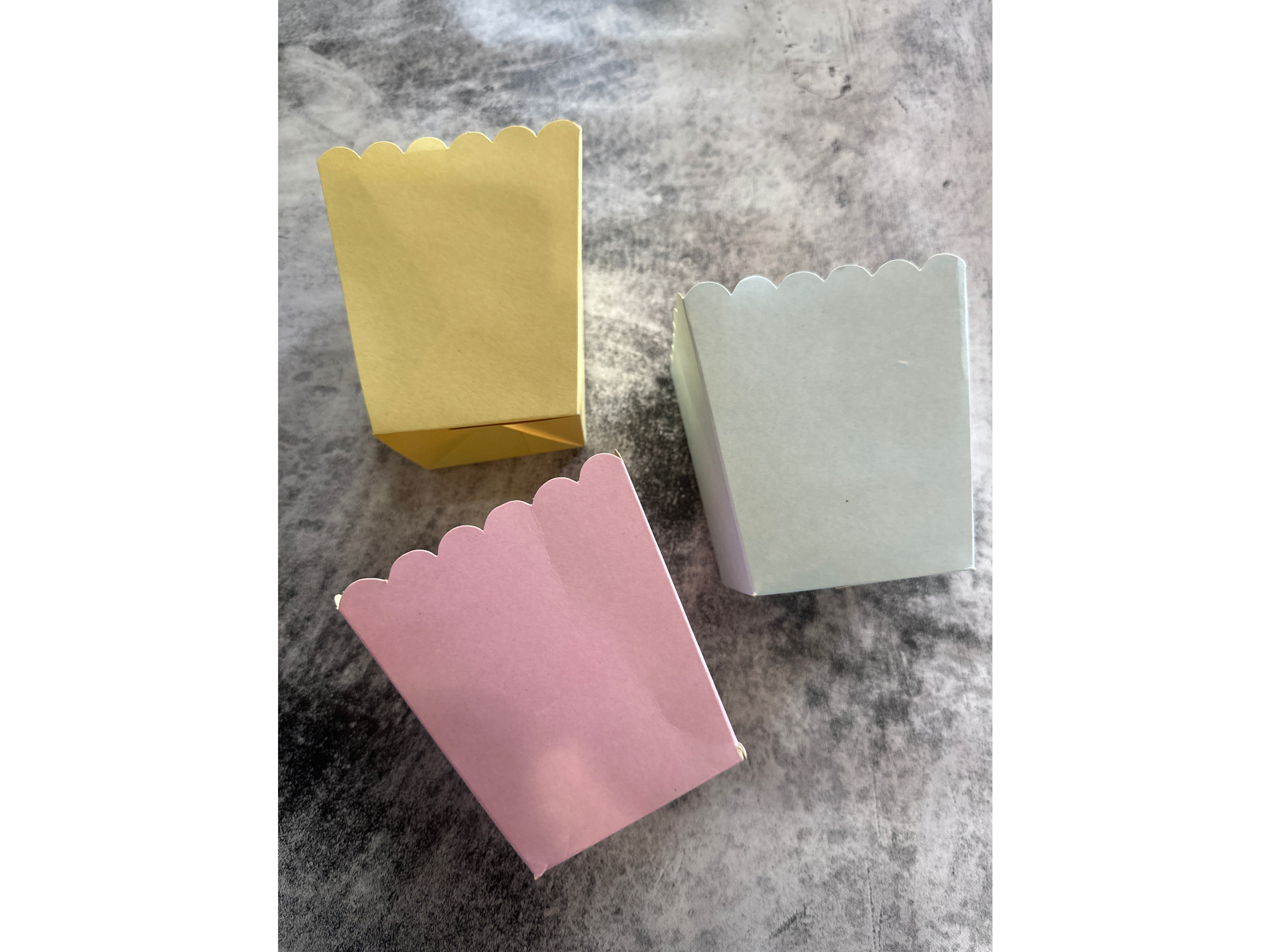 Caja pochoclera lisa Compartir Medida: 8,5x10 Presentaciones Seleccioná las opciones que quieras.Celeste pastel$400Amarillo pastel$400Rosa pastel$400 Observaciones 0 / 150