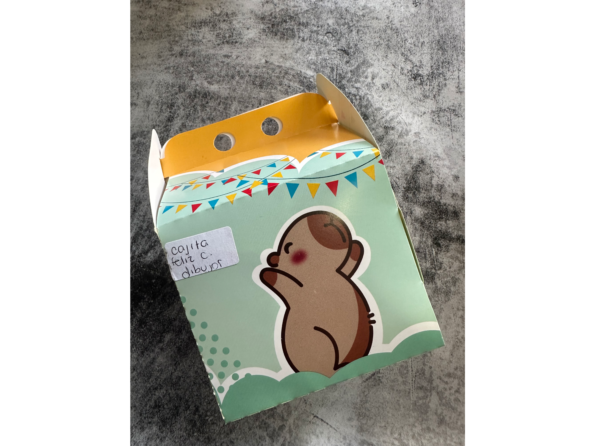 Cajita feliz impresa Compartir Medida: 12x10x12 Presentaciones Seleccioná las opciones que quieras.Capivara$500Spiderman$500Lilo & Stich$500Mickey$500 Observaciones 0 / 150