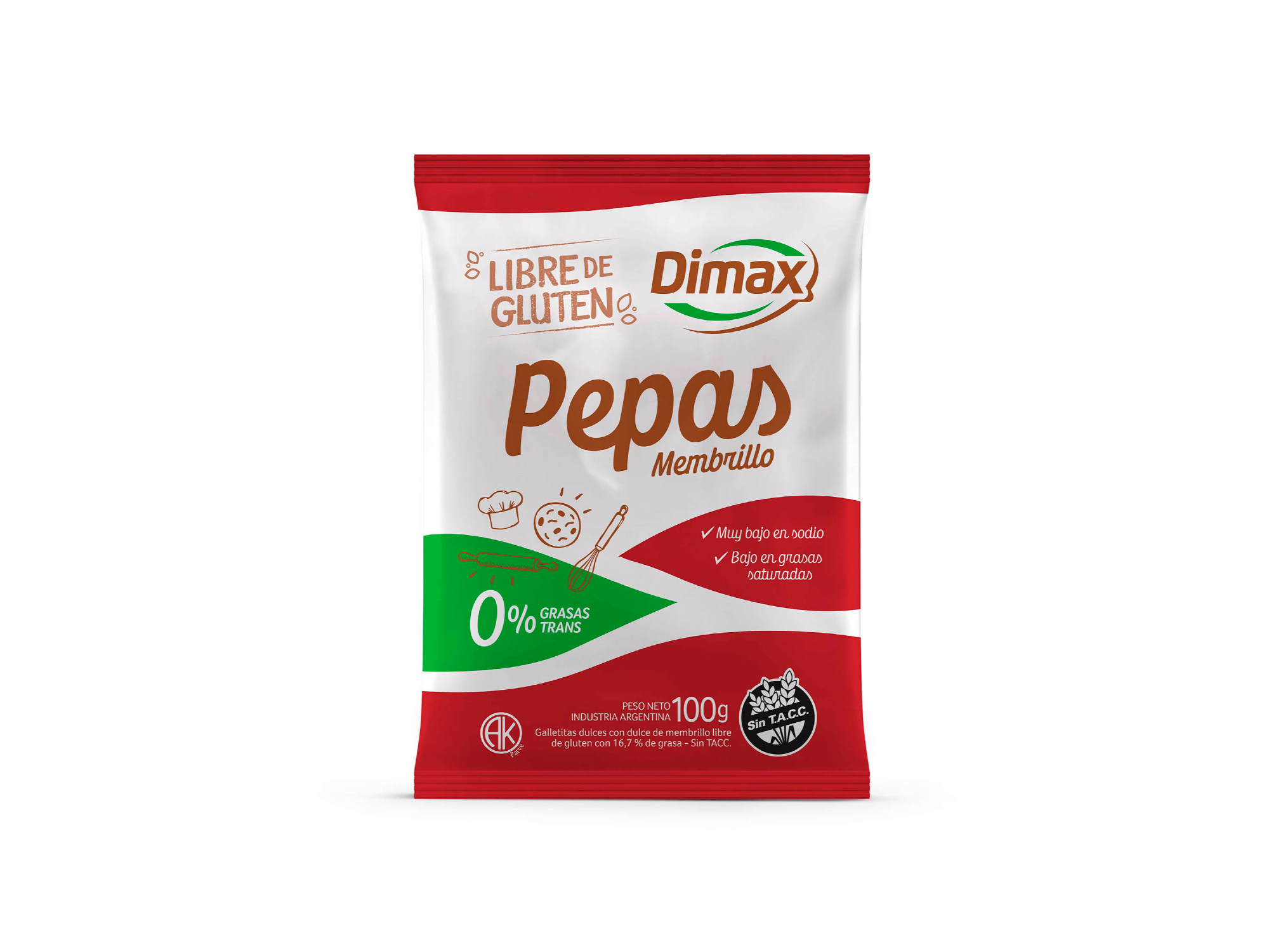 Dimax Pepas membrilloDimax Pepas membrillo caja x 200grs o paquete individual x 100gr Presentaciones Seleccioná las opciones que quieras.Unidad Caja x 200gr$1.929,386 Cajas x200gr $1833.33(C/U) $11.00015 Cajas x 200gr $1753.33(C/U) $26.300Bulto x 200 gr 44 Unidades en cajita x 200gr $1607.72 $70.740 Observaciones 0 / 150