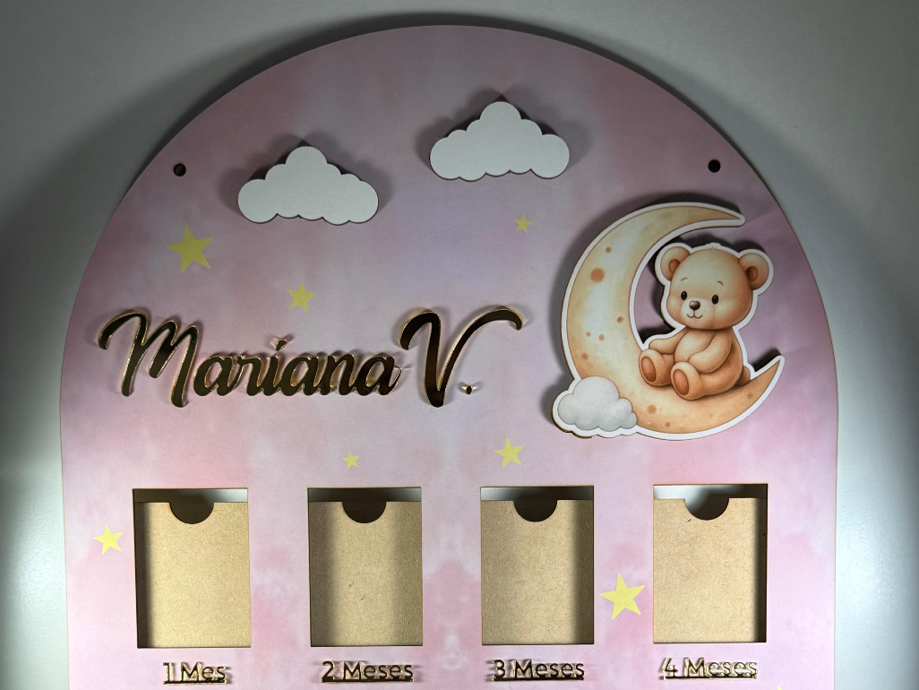 CARTEL PORTARETRATO 12 MESES | MODELO LUNA Y OSITO Compartir por WhatsApp Copiar enlace Fabricado en MDF 3mm con vinilo a color, con figuras a color y nombre PERSONALIZADO en acrilico espejo dorado, con los meses meses en relieve en acrilico espejo dorado. Tipo porta retrato para colocar fotos de 8x6cm Tamaño total 50x35cm$44.050 Observaciones 0 / 150 Encontrá productos relacionados CUADRO 12 MESES (3)