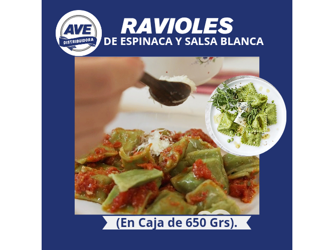 RAVIOLES DE ESPINACA Y SALSA BLANCA (En Caja de 650 Grs).
