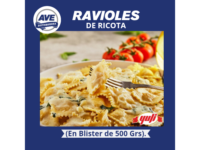 RAVIOLES DE RICOTA ( x Blister de 500 Grs).Riquisimo es poco, son una delicia hecha realidad. Con la calidad de siempre. Vienen en Blister de 500 Grs. Pastas pasteurizadas.$2.040 Observaciones 0 / 150 Encontrá productos relacionados RAVIOLES (14)
