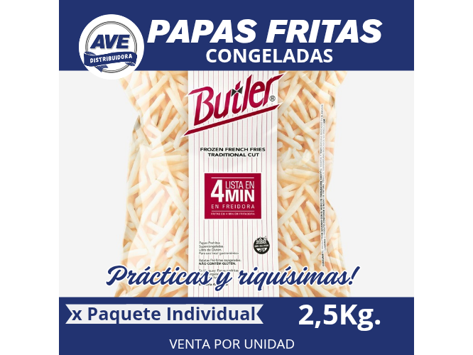 PAPAS FRITAS BUTLER Filtros Compartir por WhatsApp Copiar enlace X UNIDAD PAPAS FRITAS BUTLER - (En bolsa de 2,5 Kg). $7.499