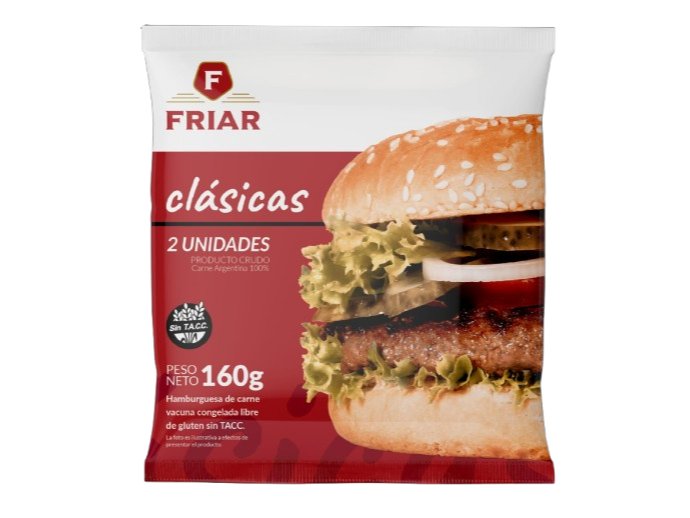 HAMBURGUESAS CLÁSICAS X160 GRS (COMPRA MINIMA 15 PAQUETES) Compartir por WhatsApp Copiar enlace Hamburguesas clásicas FRIAR, bien carnosas y sabrosas. Libres de gluten y sin TACC. Una opción rendidora y accesible para todos los días.$2.040 Observaciones 0 / 150 Encontrá productos relacionados HAMBURGUESAS (11)