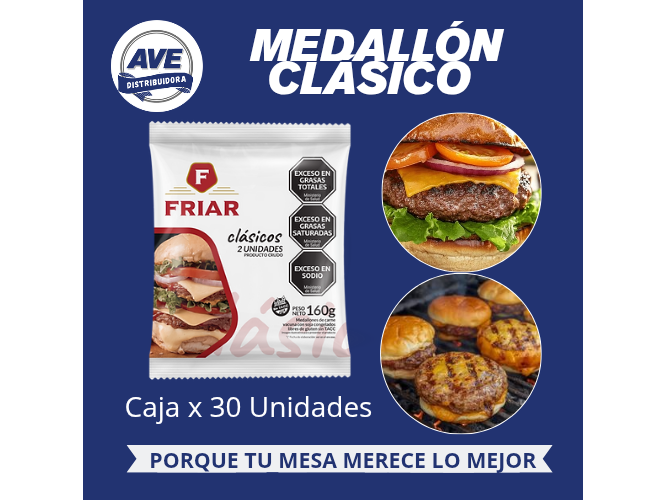 MEDALLON CLASICO - COMPRA MINIMA- Media Caja Compartir por WhatsApp Copiar enlace Rico, práctico y liviano. Para darle sabor a tus días. Calidad excelente, años en el mercado! La media caja viene con 30 hamburguesas. Aptos para celíacos ( Sin T.A.C.C) Son 15 paquetes de 2 unidades de 160 grs.$20.570 Observaciones 0 / 150 Encontrá productos relacionados PRECIO UNITARIO (4) MEDIA CAJA (1)