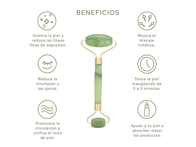 Es una herramienta que tiene dos piedras en forma de cilindro en cada punta una mas grande para masajes en frente, mejillas mandíbula y cuello y la otra más pequeña para labios y contorno de ojos.