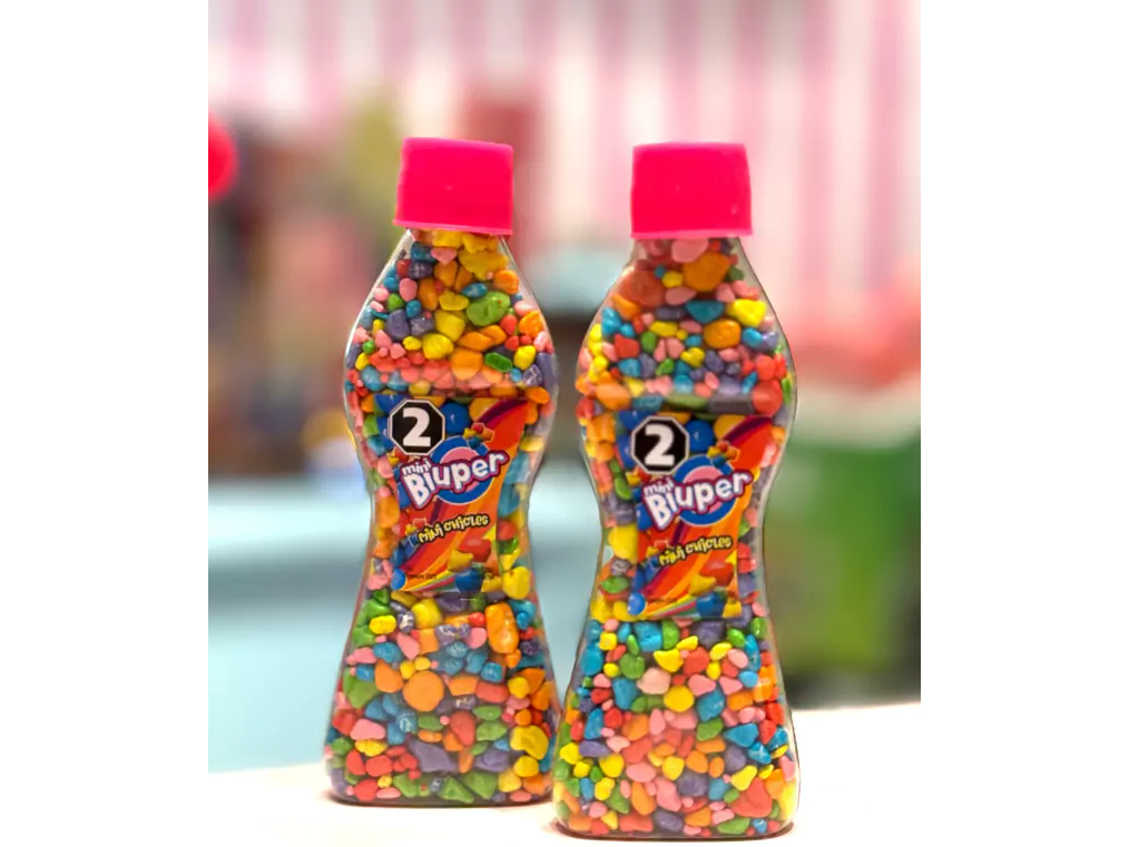 Chicles mini en botella plastica, pack de 6 unidades