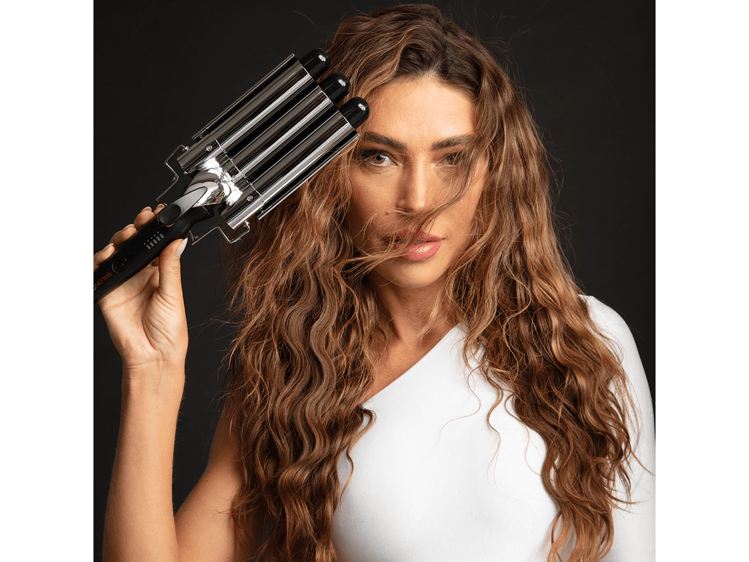 Diseñado con tres barriles calefaccionados, este rizador permite formar ondas tipo “beach waves” de manera rápida y uniforme, siendo perfecto para cabellos largos y gruesos. Su tecnología asegura una distribución pareja del calor, logrando resultados profesionales sin dañar el cabello.