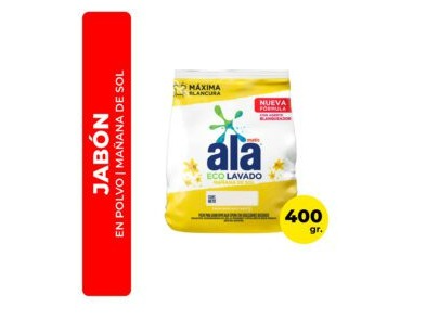 7791290792166JABON EN POLVO ALA 400G (MAÑANA DE SOL) Compartir ALA ECO LAVADO BAJA ESPUMA$1.199,13 Observaciones 0 / 150