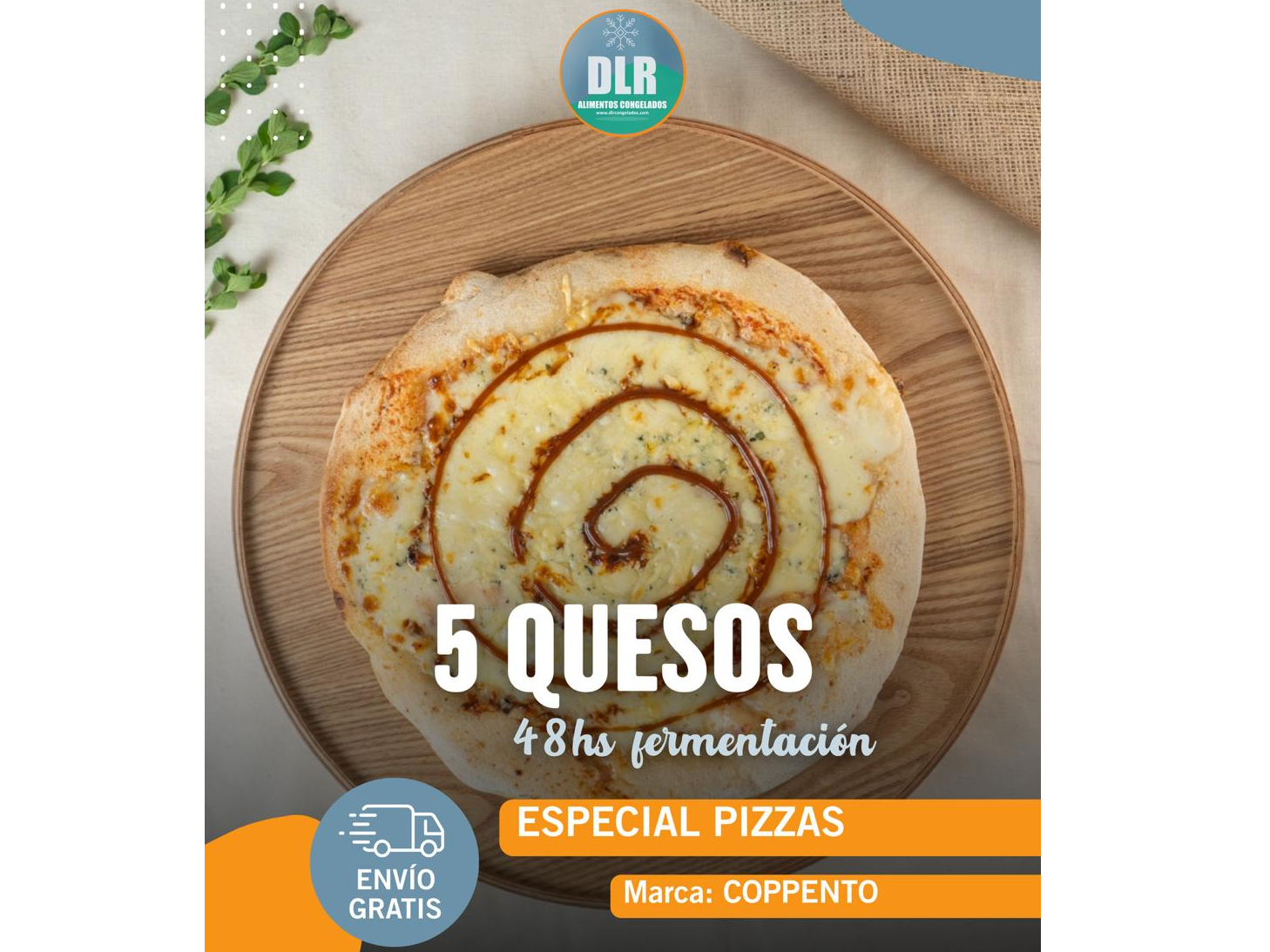 Pizza 5 Quesos Coppento (5 unidades) Compartir por WhatsApp Copiar enlace Ingedientes: Queso mozzarella, provolone, queso azul, reggianito, sardo estacionado y salsa barbacoa.$56.406 Observaciones 0 / 150