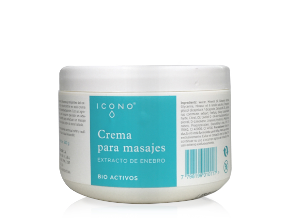 Las propiedades calmantes y relajantes del extracto de enebro se concentran en esta crema para masajes descontracturantes.