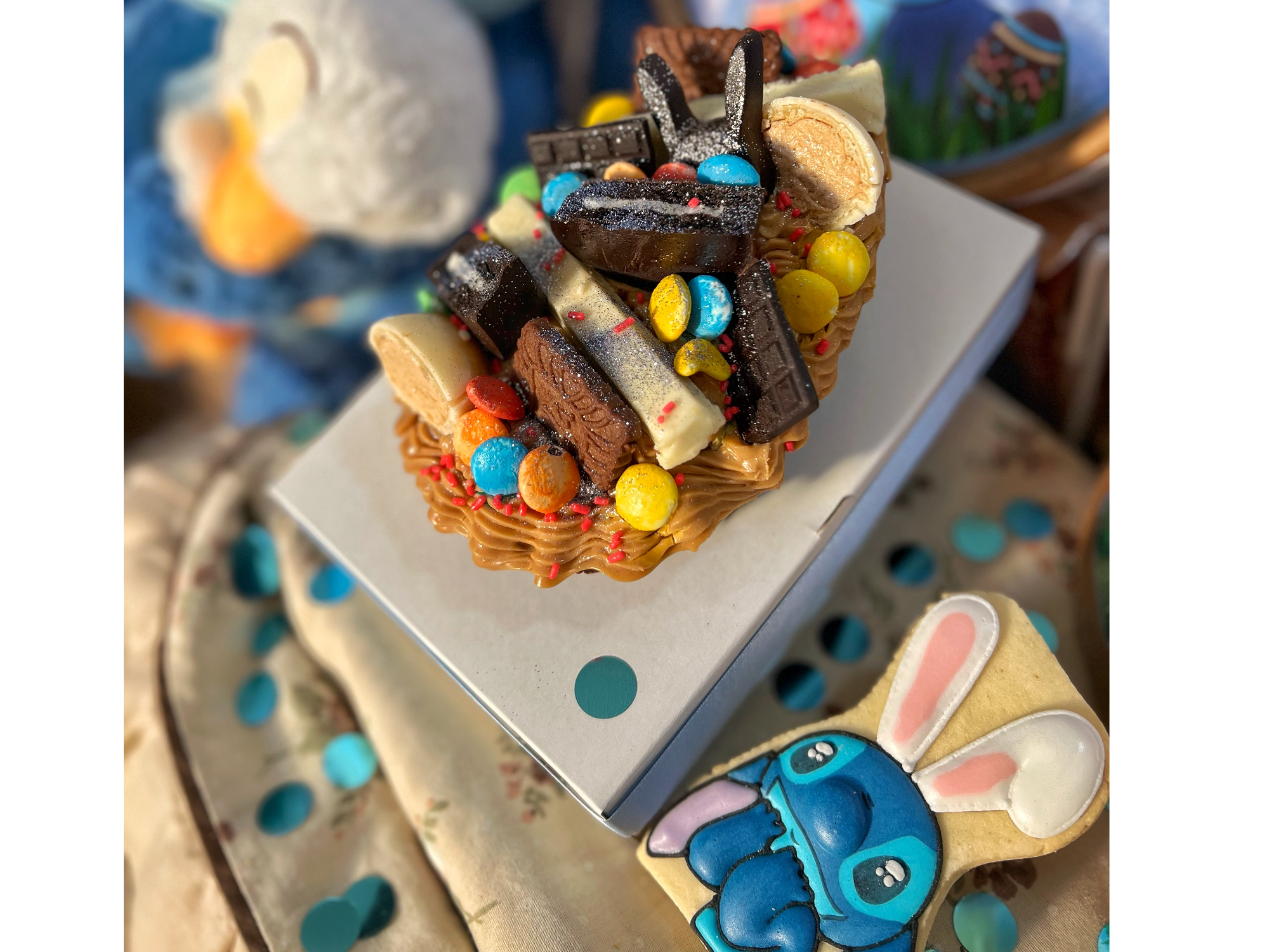 La Experiencia Stitch reúne lo mejor de nuestras Pascuas en una caja temática diseñada con cada detalle: incluye un huevo de Pascua artesanal , acompañado por una tierna cookie artesanal de Stitch con orejitas de conejo que suma dulzura y diversión.