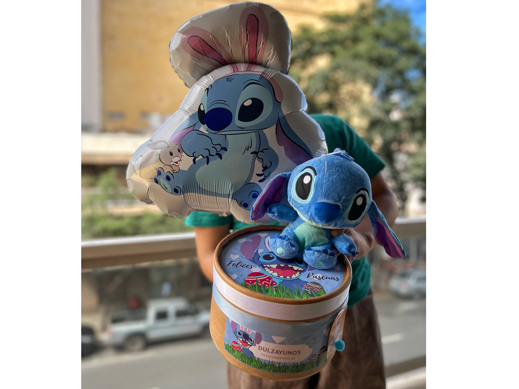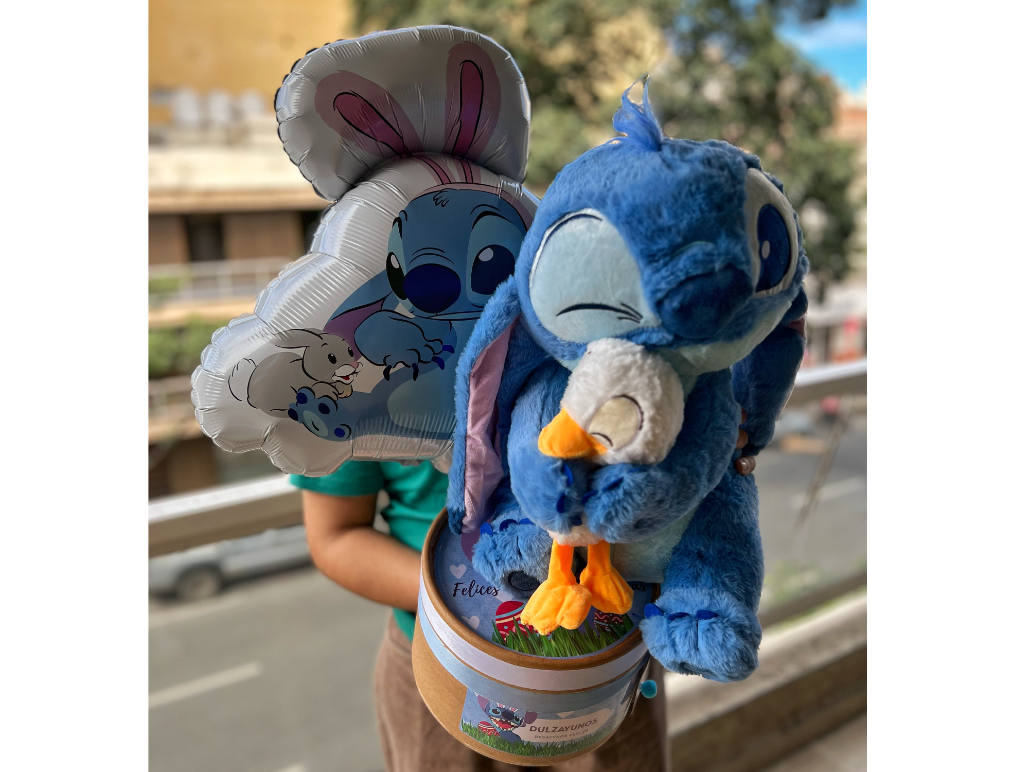 -Caja exclusiva con diseño único de Stitch de Pascuas, detalles y moño