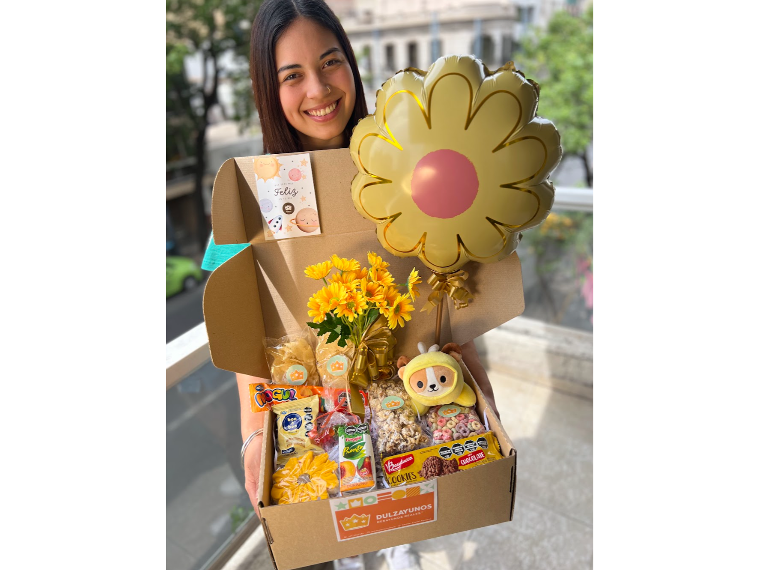 Inspirado en la energía del sol y la ternura de las flores, este box combina sabores deliciosos y detalles adorables que iluminan el día de quien lo recibe.