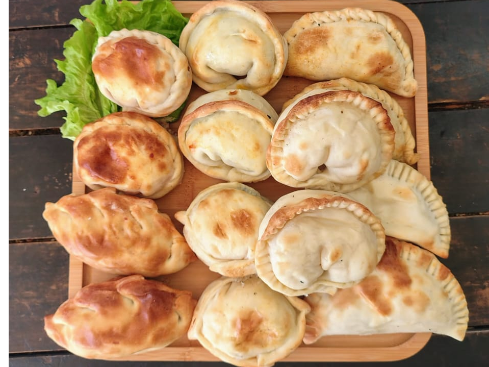 Docena de empanadasSabores disponibles: Carne, carne frita, pollo, verdura, jamon y queso, roquefort, humita, cebolla y queso. Con la compra de una docena, te llevas dos de regalo.$24.000 Observaciones 0 / 150