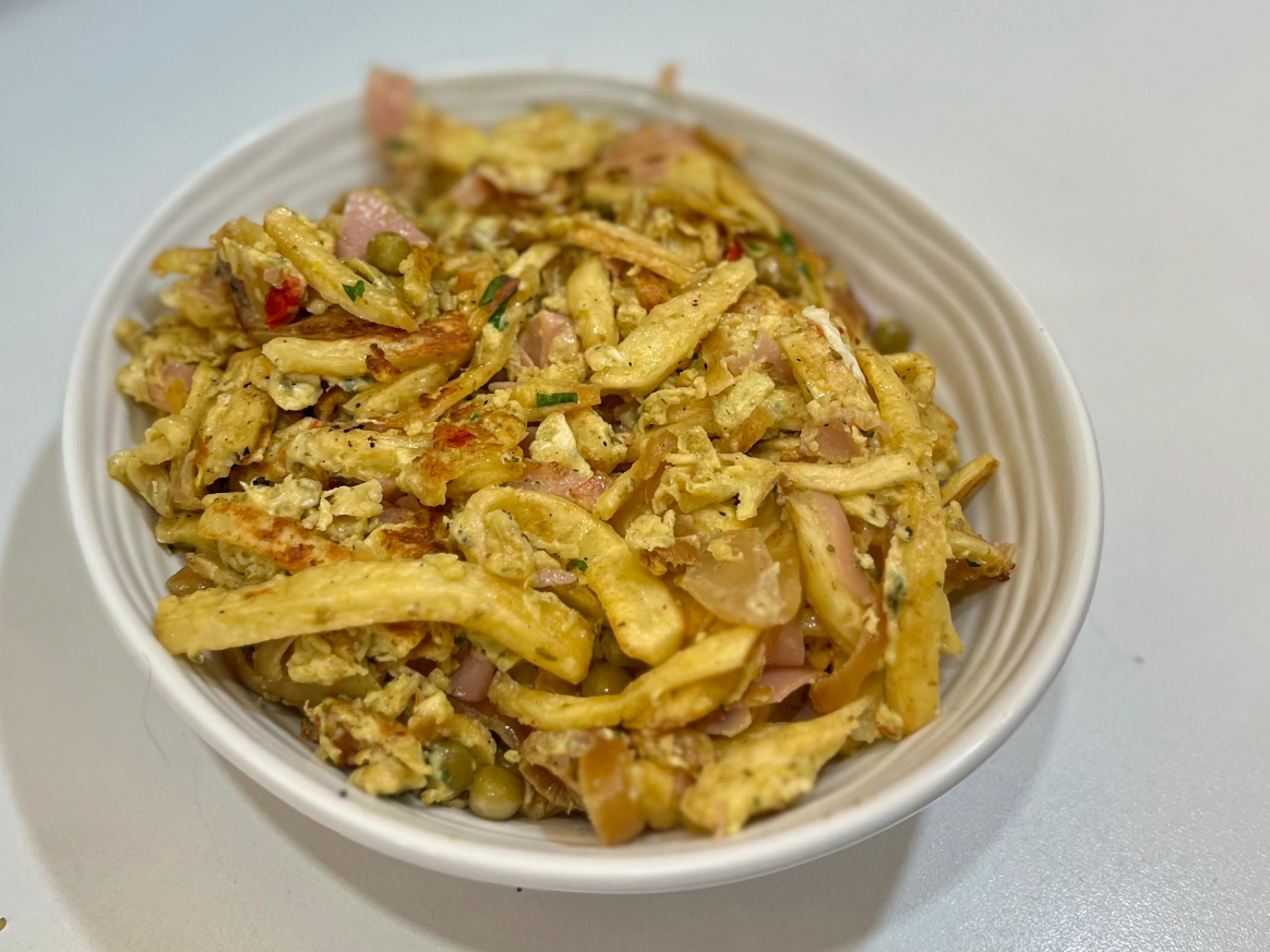 Revuelto gramajoPapas pay, cebolla, arvejas, jamón cocido, morrón, huevo revuelto.$10.000 Observaciones 0 / 150