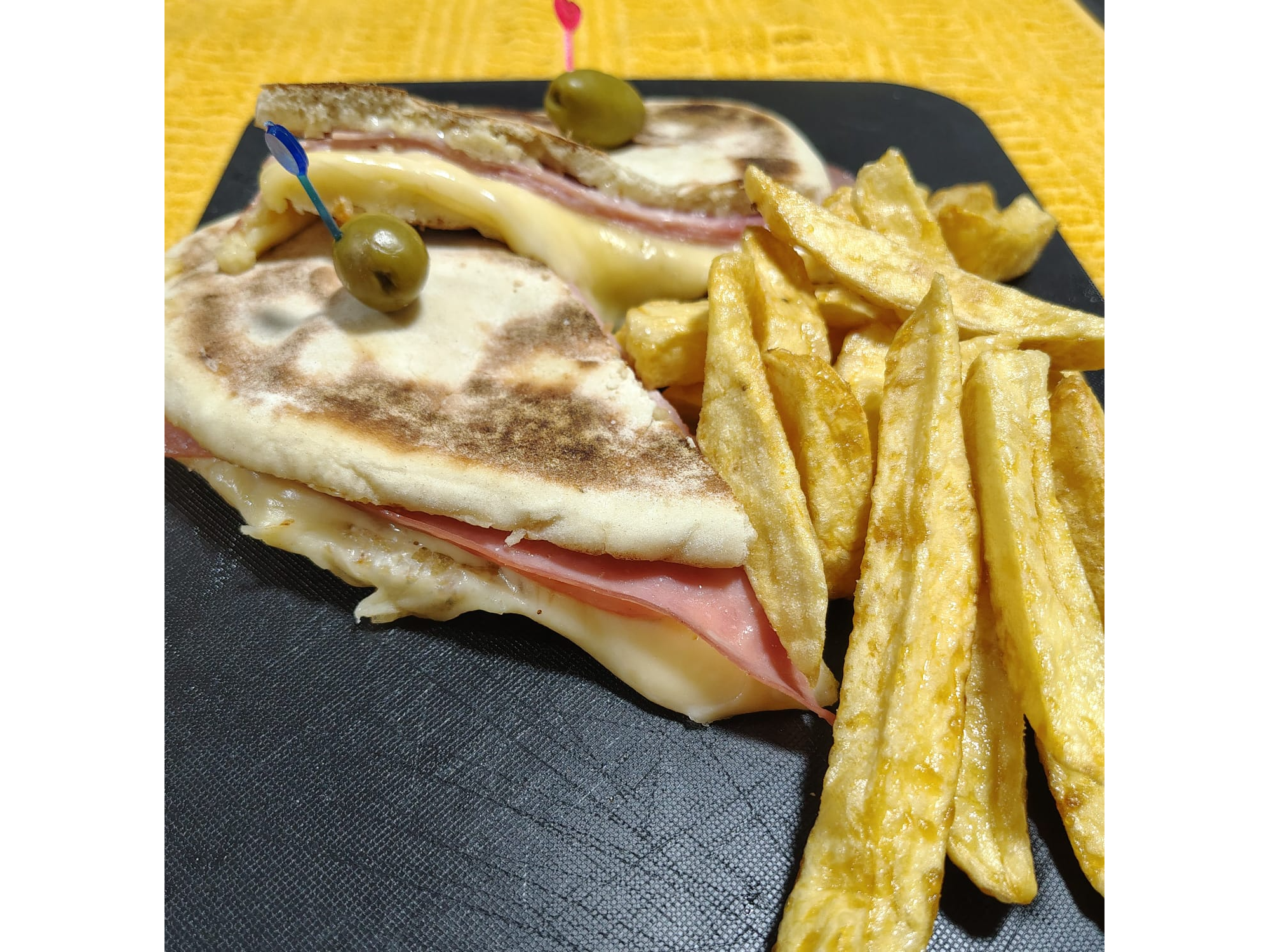Tostado completo Compartir por WhatsApp Copiar enlace Pan árabe de 19 cm, mayonesa caasera, jamón, queso y papas fritas$8.000 Observaciones 0 / 150