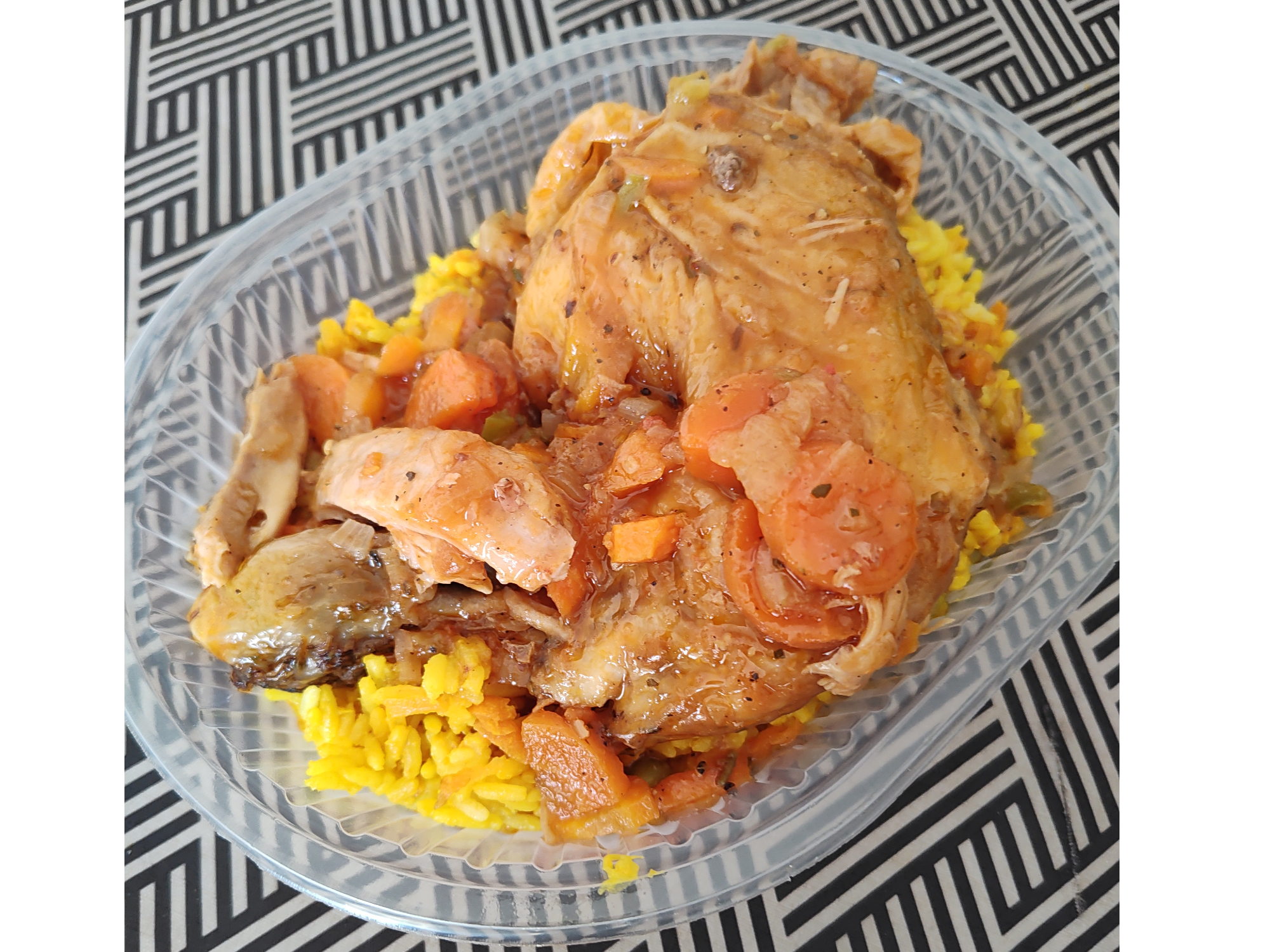 POLLO AMARILLO Compartir por WhatsApp Copiar enlace Sin stock Pata muslo de pollo a la cacerola con verduras y arroz amarillo.$9.000 Personalizá tu selección Las siguientes opciones aplican para cada producto agregado. Adicionales Seleccioná las opciones que quieras.Cubiertos 1 cuchillo+ 1 tenedor reforzados $100Queso rallado 40 gr Sobre de queso reggianito rallado de 40 gramos la serenísima Sin stock $1.500Huevo duro$500Queso cremoso$1.500Mayonesa Mayonesa Hellmanns de 118 gr $1.000Ketchup$1.000Mostaza$1.000Palta una palta entera grande $2.000 BEBIDAS Seleccioná las opciones que quieras.Botella COCA COLA 500ml Botella de 500ml $2.000Botella ZERO COCA COLA 500 ml Botella de 500 ml $2.000Botella SPRITE 500ml Botella de 500ml Sin stock $2.000Botella ZERO SPRITE 500ml Botella de 500ml 4 unidades en stock $2.000BOTELLA Paso de los toros POMELO Botella 500 ml 7 unidades en stock $2.000LATA Paso de los toros POMELO Lata de 269 ml 7 unidades en stock $1.000BOTELLA Schweppes Pomelo Zero Botella 500 ml Sin stock $2.000LATA Pepsi Lata Pepsi 354 ml 5 unidades en stock $1.500LATA Pepsi BLACK Lata Pepsi 354 ml Sin stock $1.500 Observaciones 0 / 150 Encontrá productos relacionados SUGERENCIA DEL DIA (8)