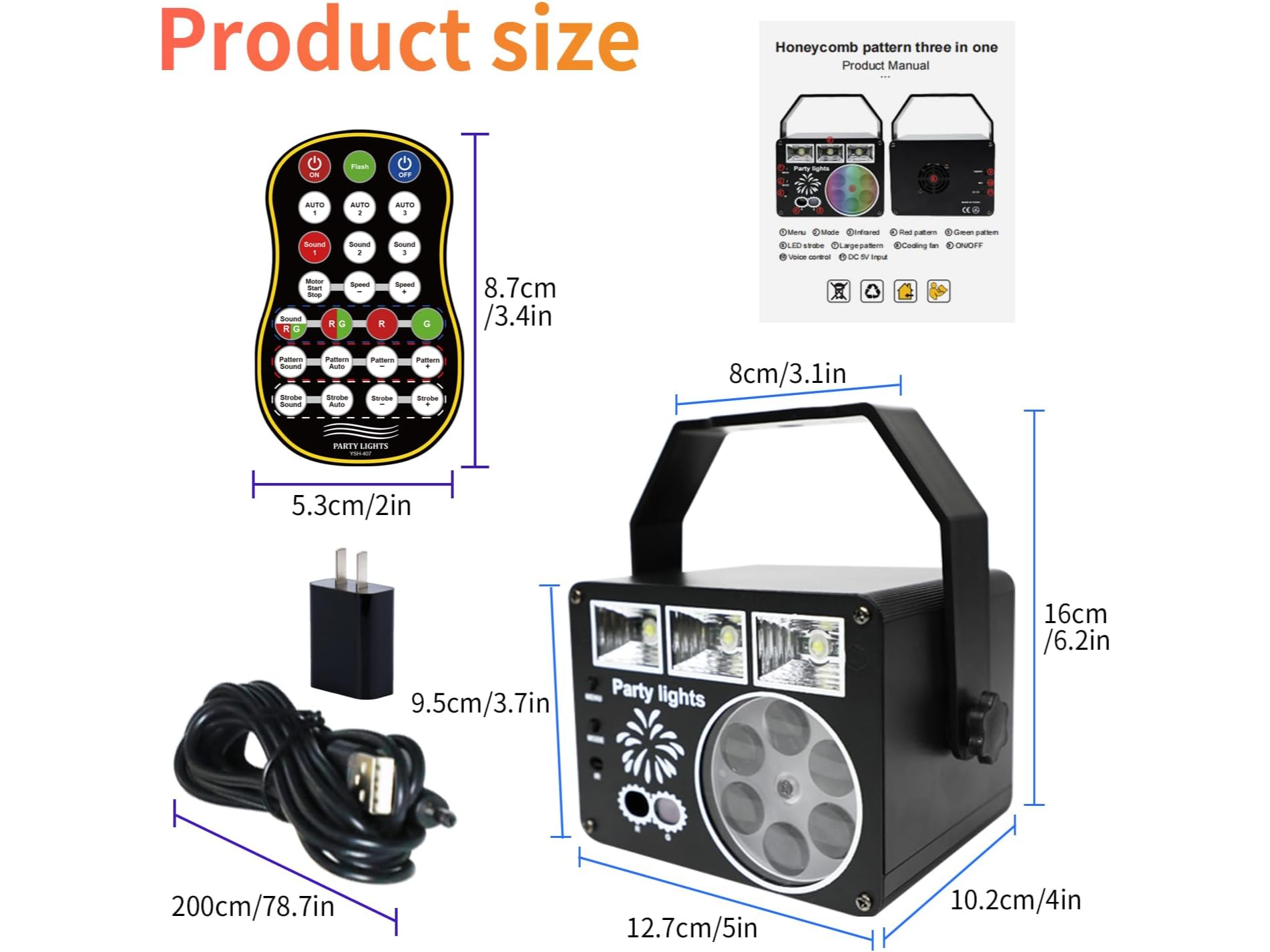 Luz estroboscópica LED GOBO 3 en 1 con efecto multifuncional