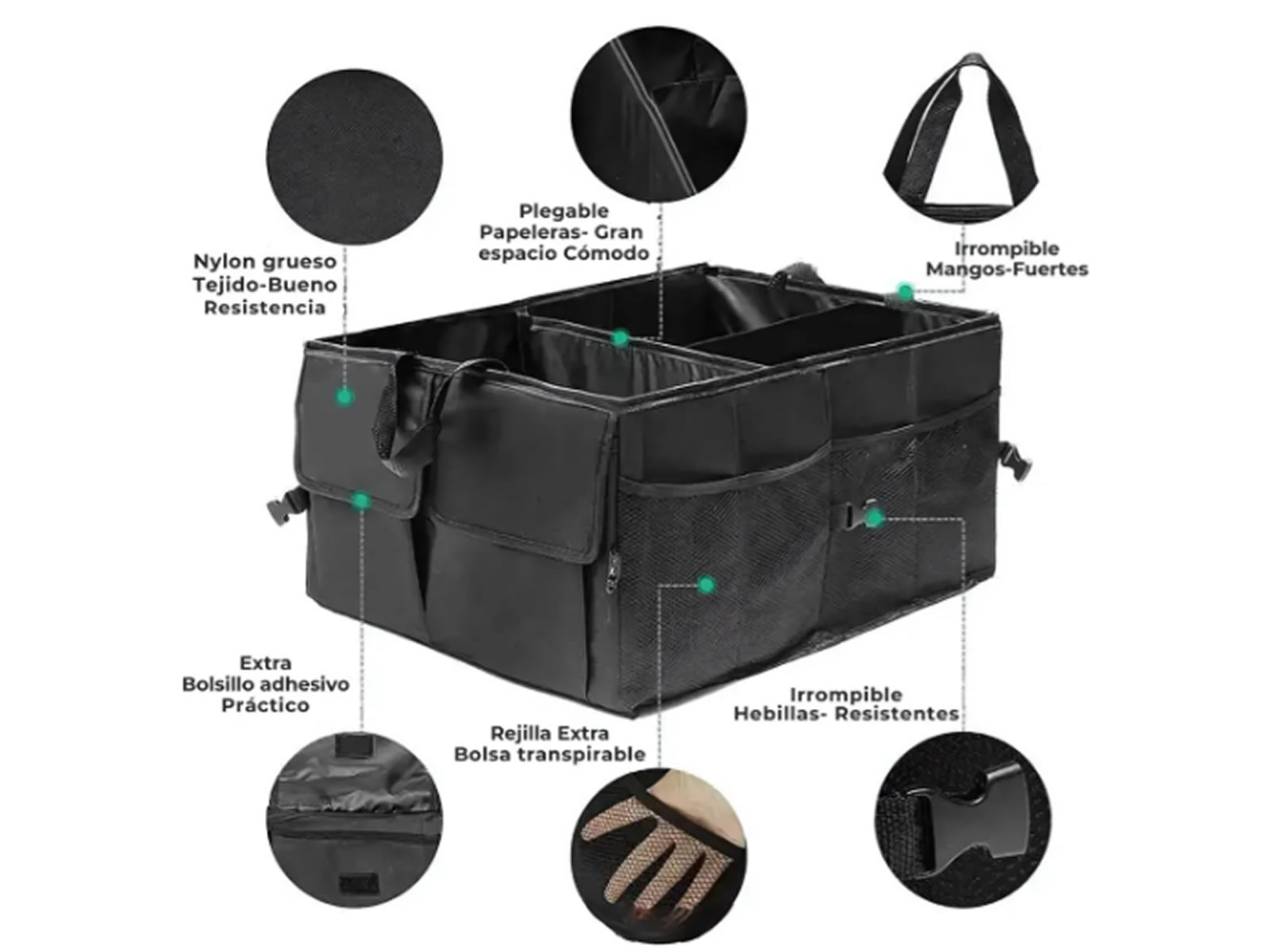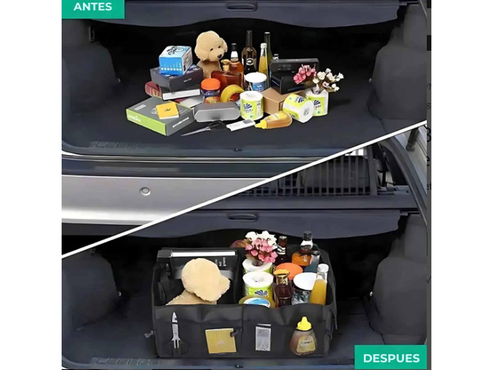 Este organizador es el complemento perfecto para mantener tu auto ordenado y aprovechar al máximo cada rincón. ¡No esperes más! Optimiza el espacio de tu vehículo hoy mismo con este práctico bolso multifunción.