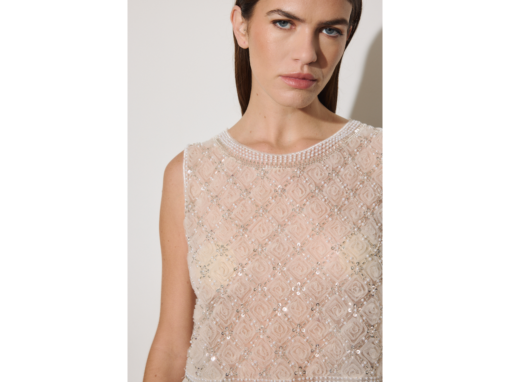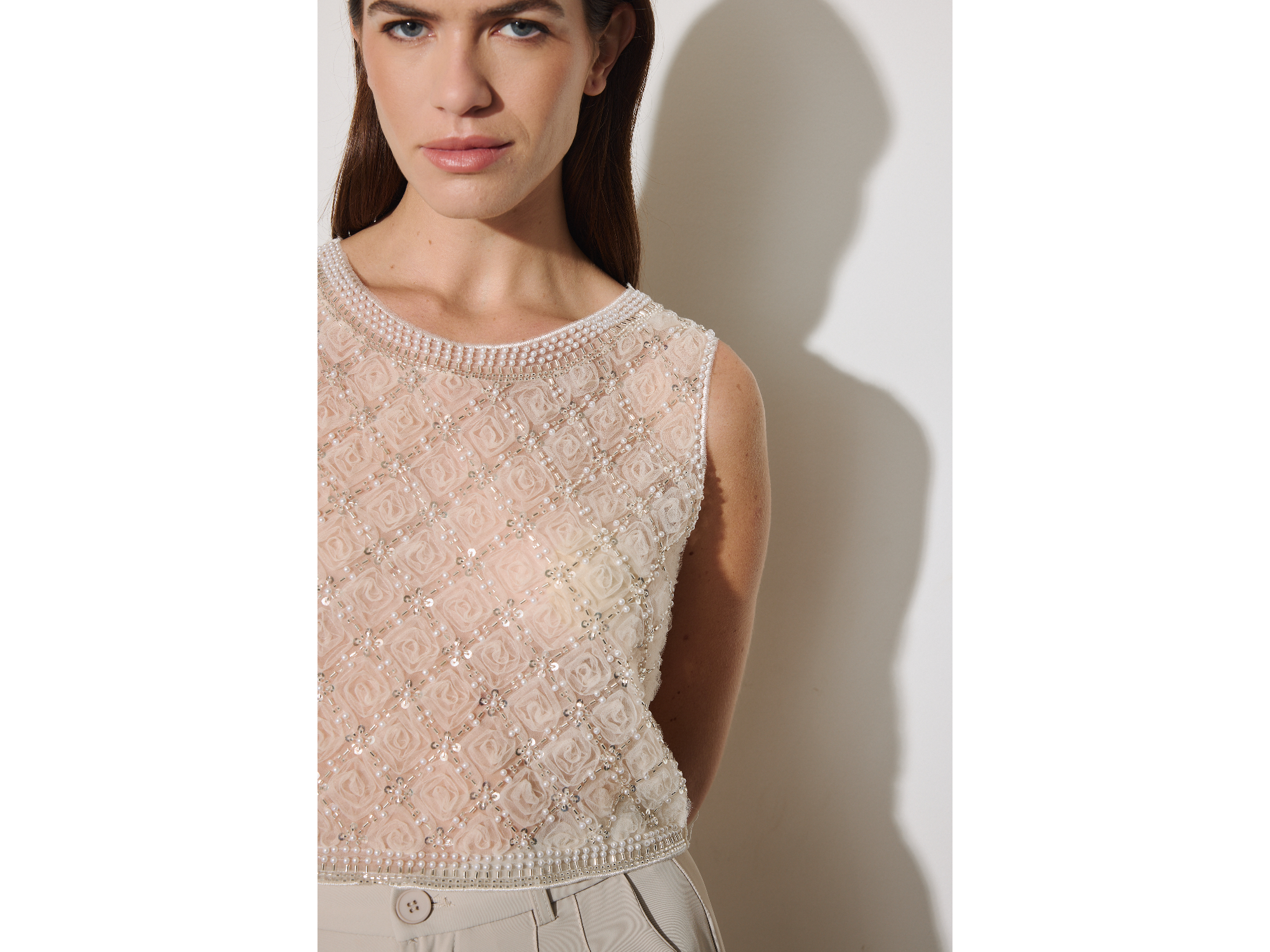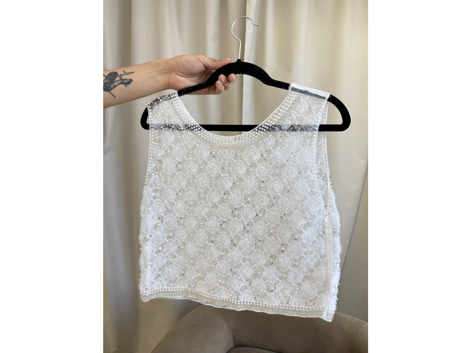 TOP CON DETALLE DE FLORES, TACHAS Y PERLAS EN FRENTE Y DETRAS