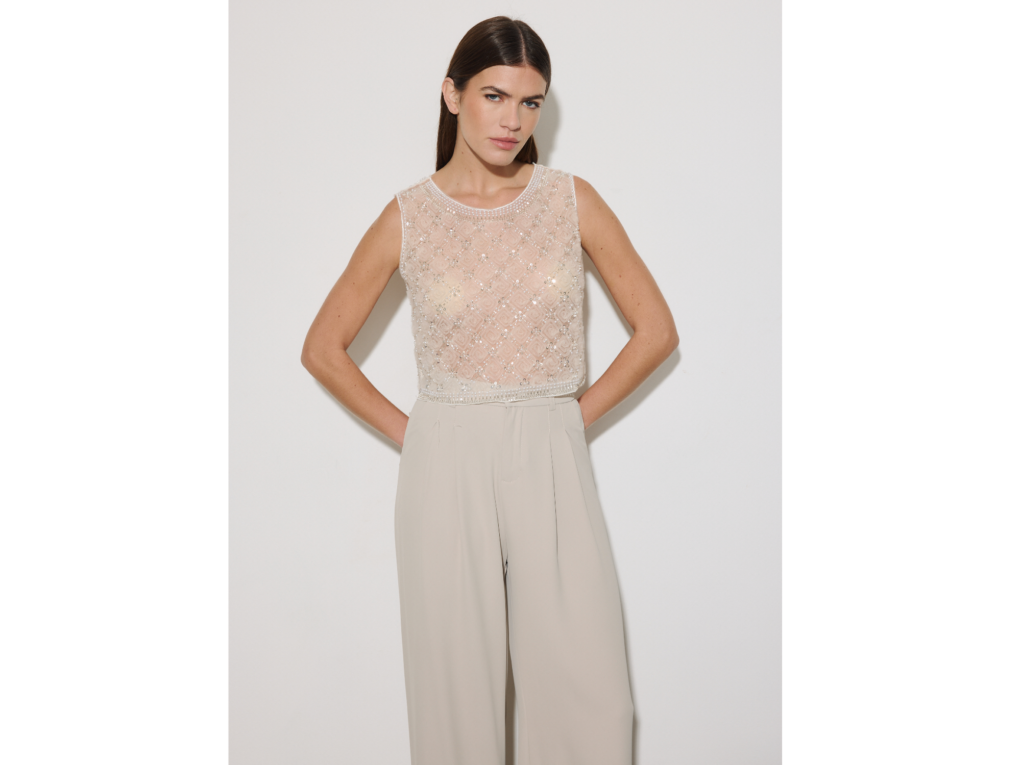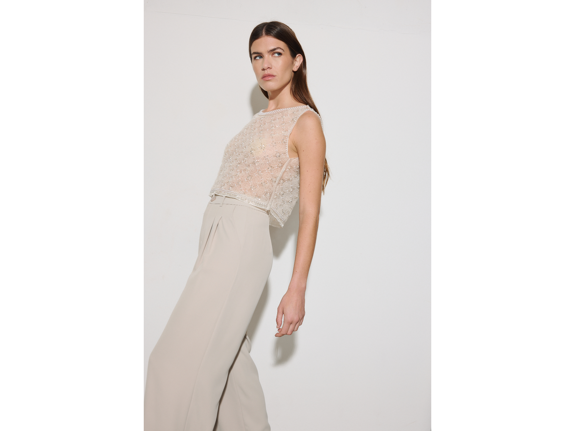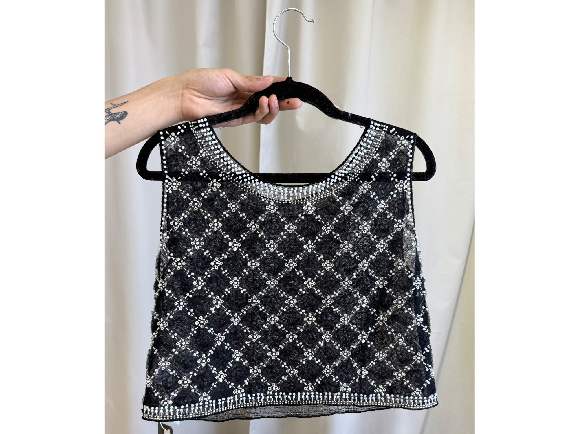 TOP CON DETALLE DE FLORES, TACHAS Y PERLAS EN FRENTE Y DETRAS