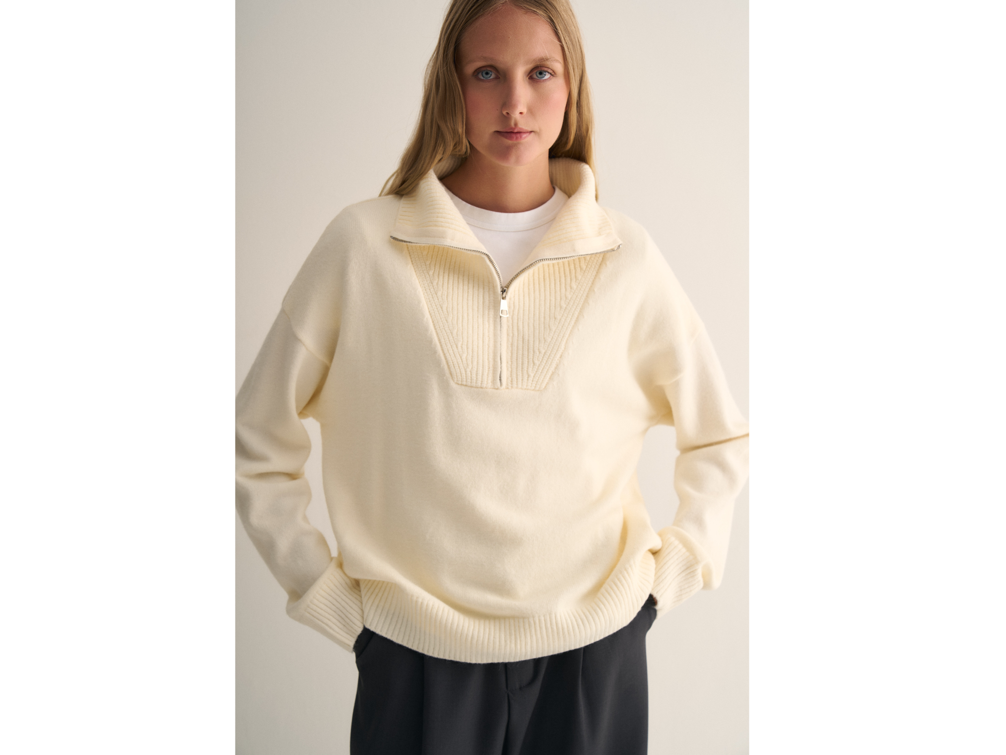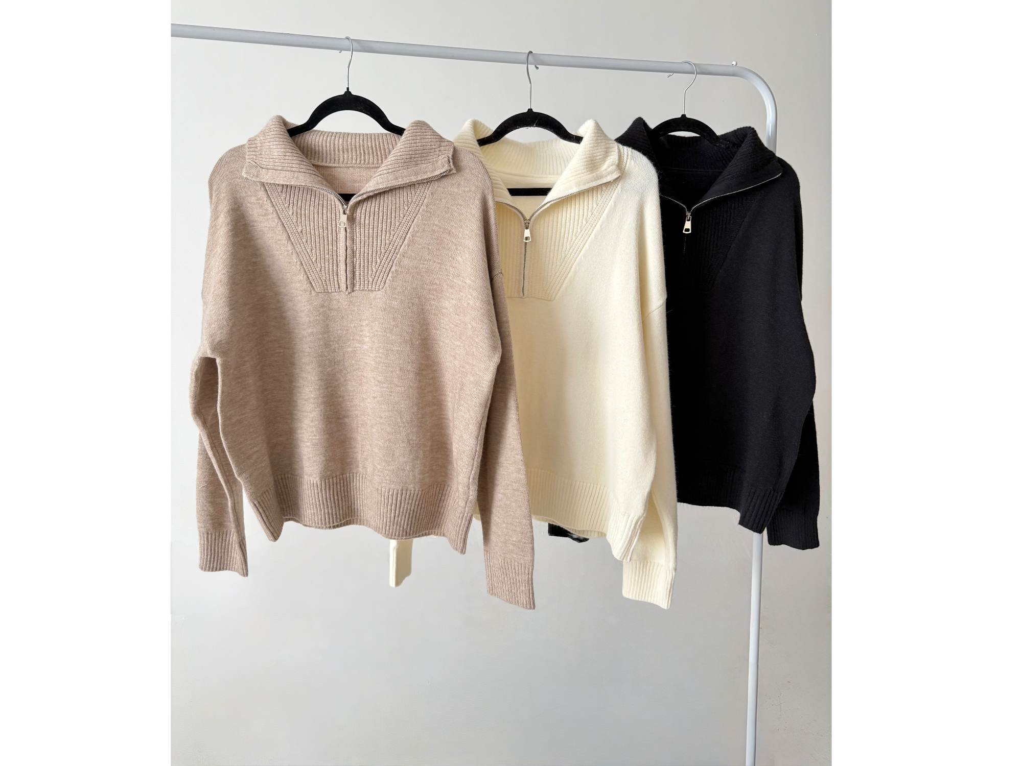 #26003 Compartir por WhatsApp Copiar enlace Sweater con cierre en el cuello TALLE UNICO MEDIDAS: 60 CM ANCHO DE SISA APROX. 62 CM LARGO APROX. COLORES: BEIGE, CREMA Y NEGRO Presentaciones Seleccioná las opciones que quieras.BEIGE$29.000CREMA$29.000NEGRO$29.000 Observaciones 0 / 150