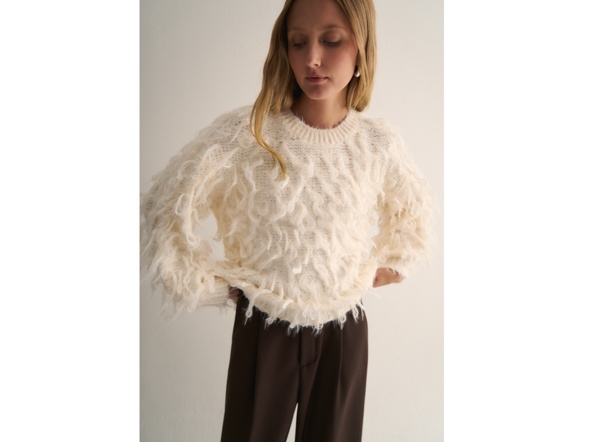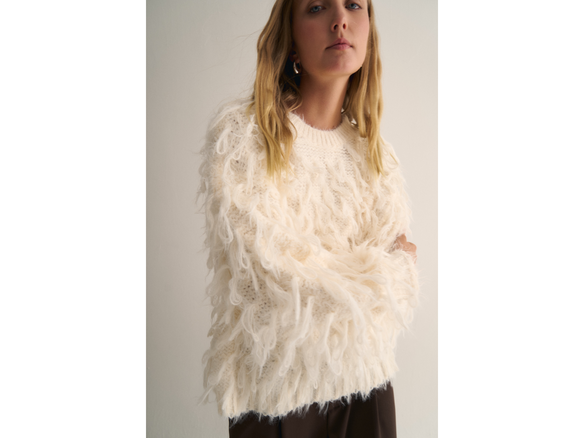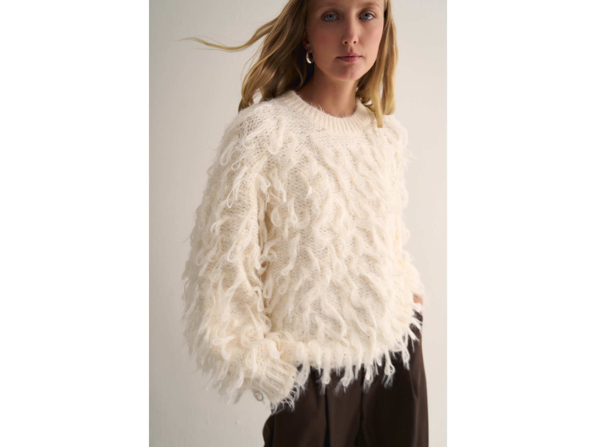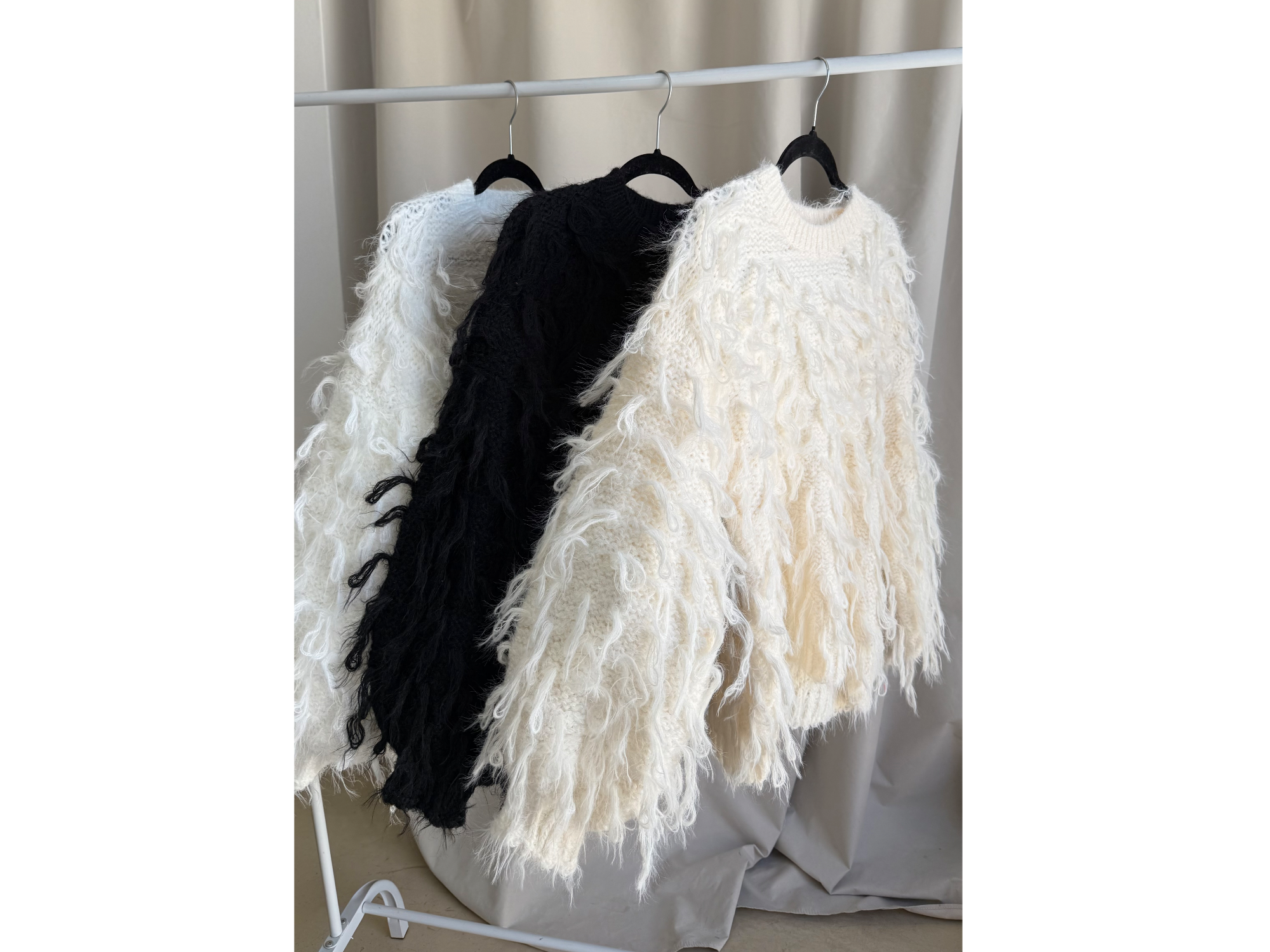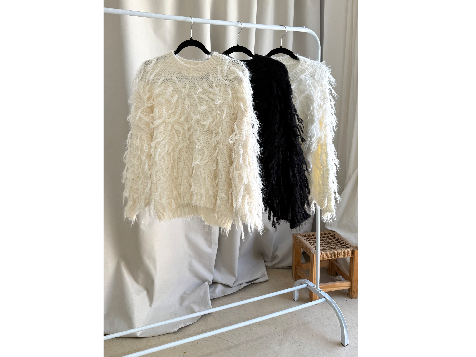Sweater oversized con flecos Talle único MEDIDAS: 47CM DE ANCHO DE SISA APROX 56CM DE LARGO APROX. COLORES: BLANCO, CREMA Y NEGRO